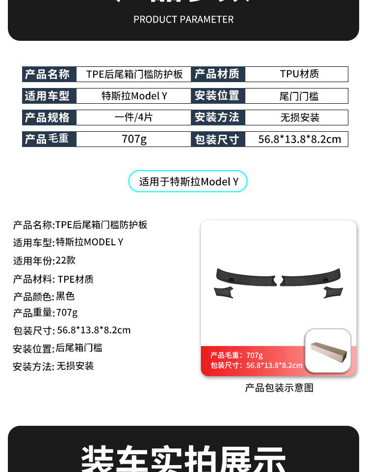 カラー Model Yトランク敷居バー (紙箱なし),Model Yトランク側保護板 (紙箱なし)