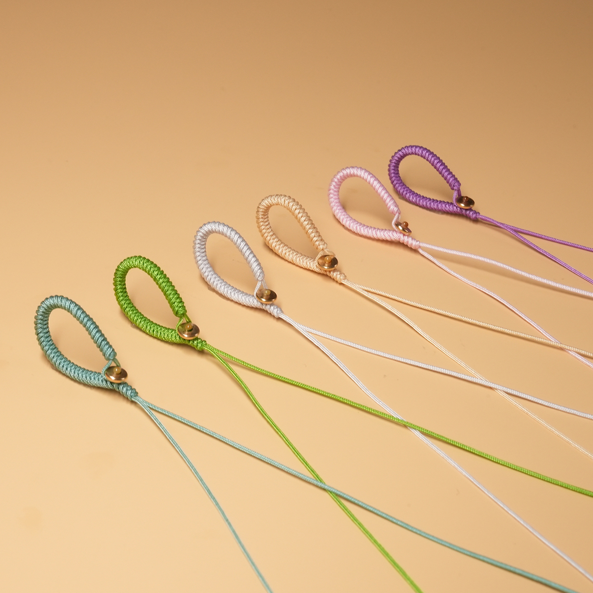 手編みひもキーホルダー半製品両面平結びひも72号玉線掛け飾り取り外し可能銅掛けストラップ