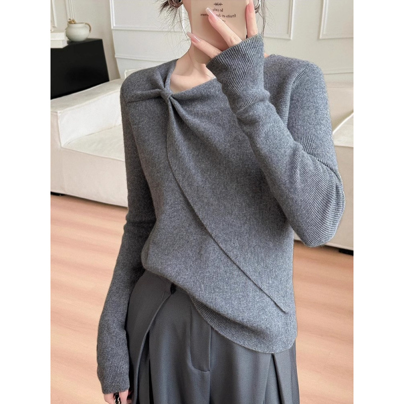 今年流行的洋气独特别致深秋chic慵懒风白色上衣针织毛衣外套女