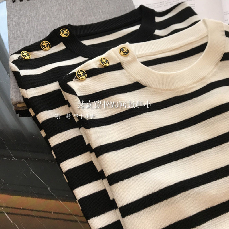 チャオ!!着飽きないヨウ素処理年齢軽減ストライプアンカーショルダーバックル半袖セーター女性用七分袖