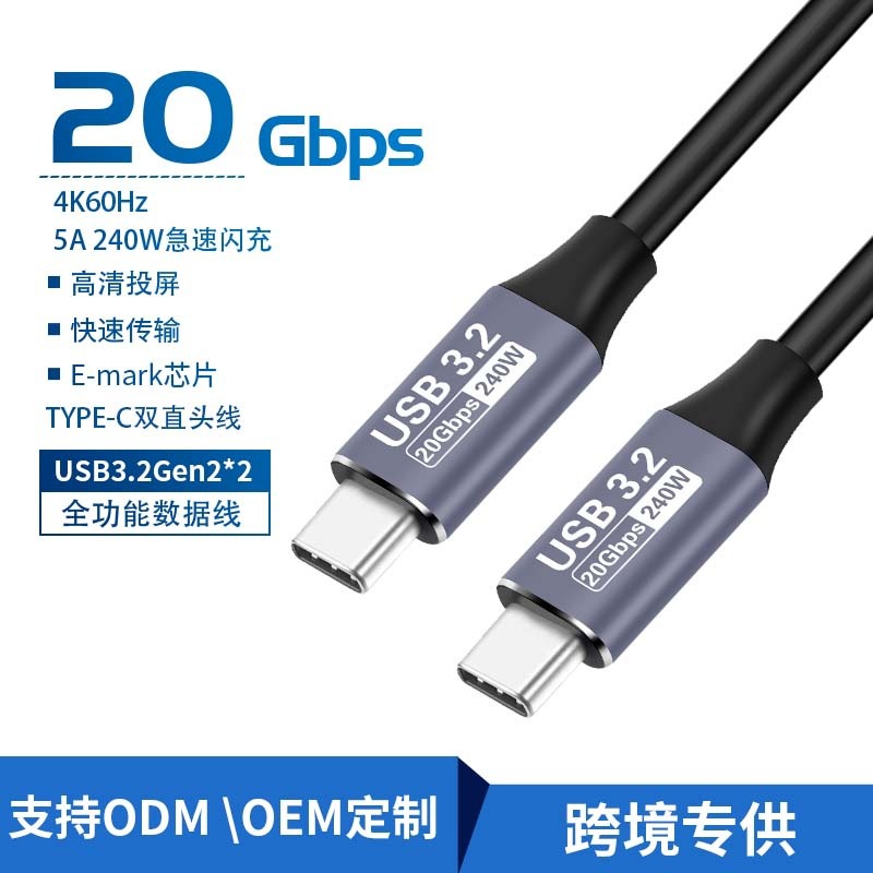双頭 TYPEC フル機能データケーブル USB3.2 GEN2*2 モバイルハードディスクケーブル PD240W ワンラインスクリーン投影