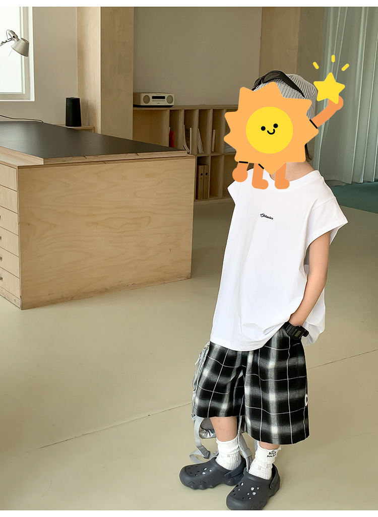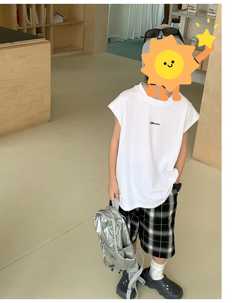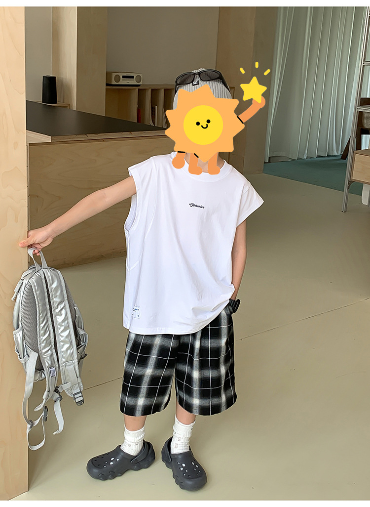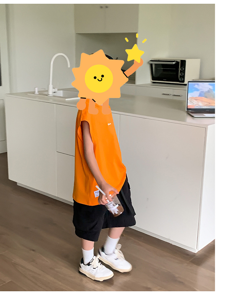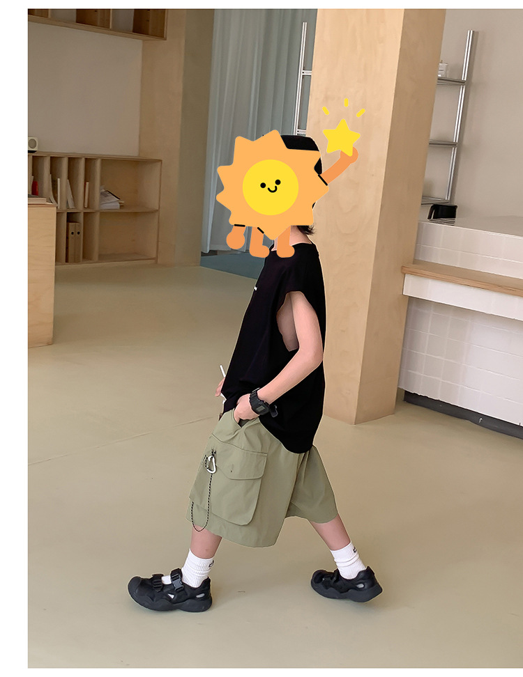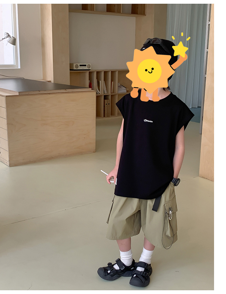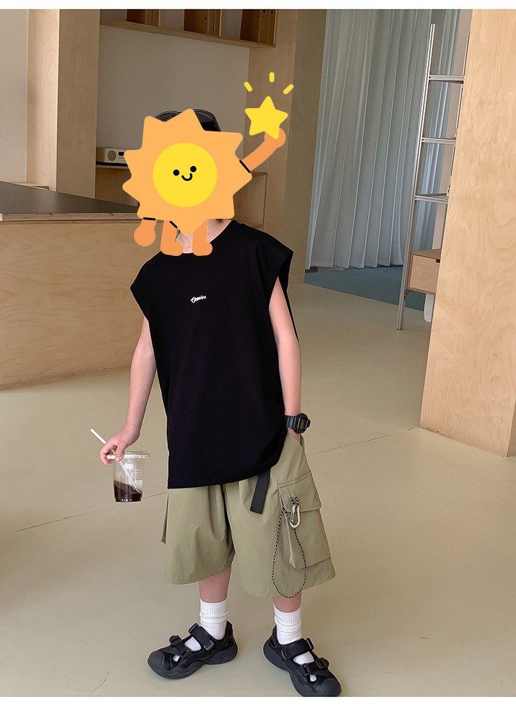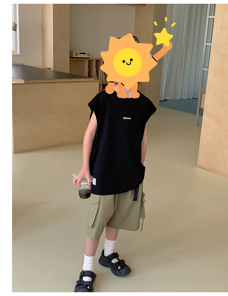 子供用ベストセット韓国版男の子夏ノースリーブ上着セット女の子赤ちゃん漫画薄いショートパンツ子供服
