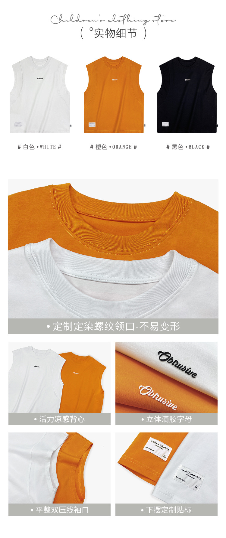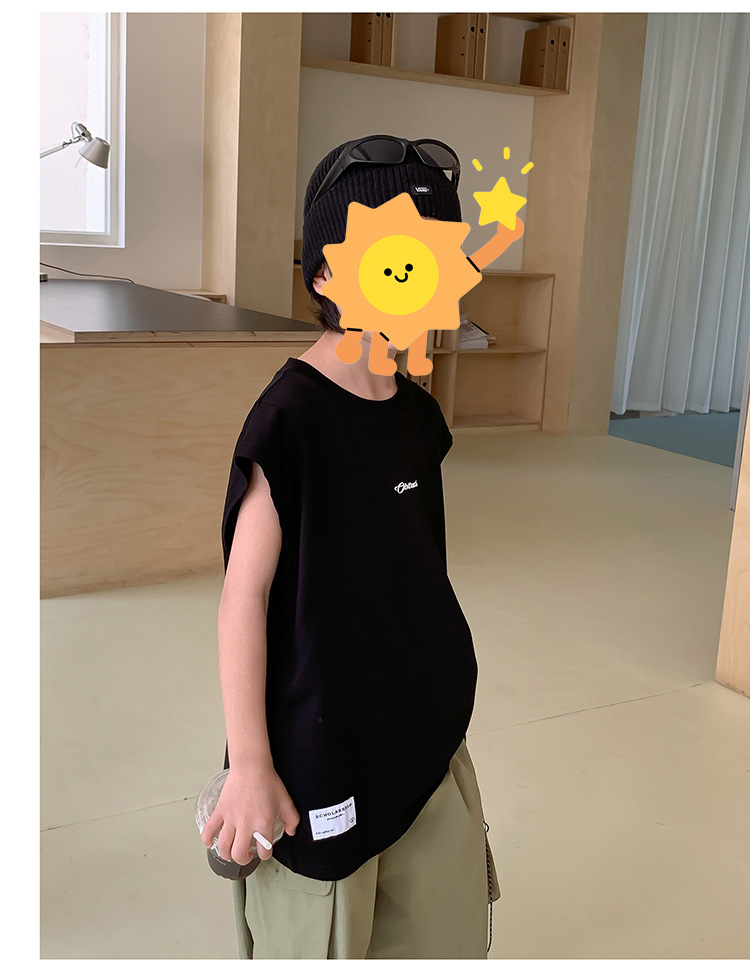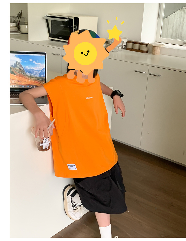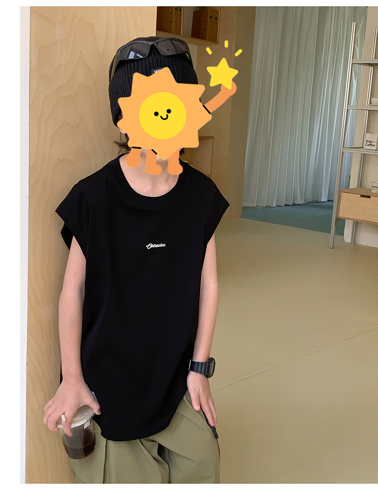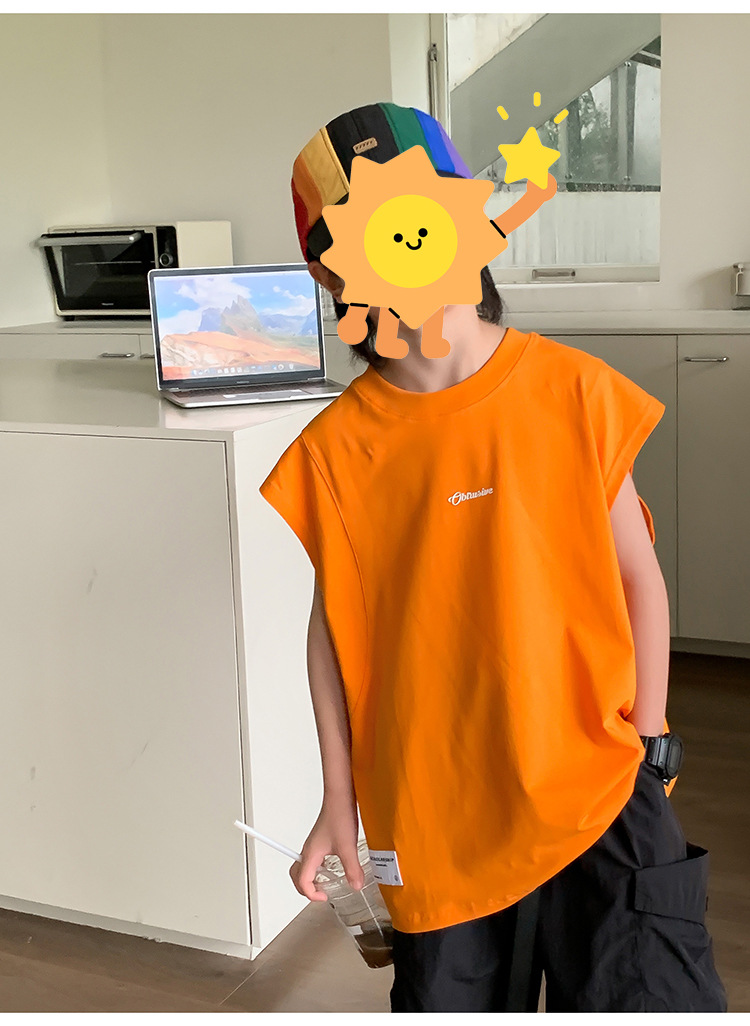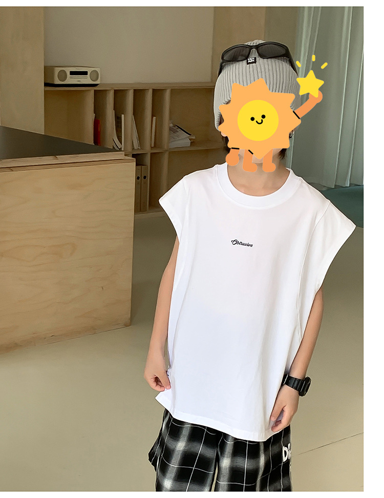 男の子の夏の丸襟の袖なしtシャツ学生の純色の純綿は肩のファッションブランドのベストを挿して薄い金を編みます。