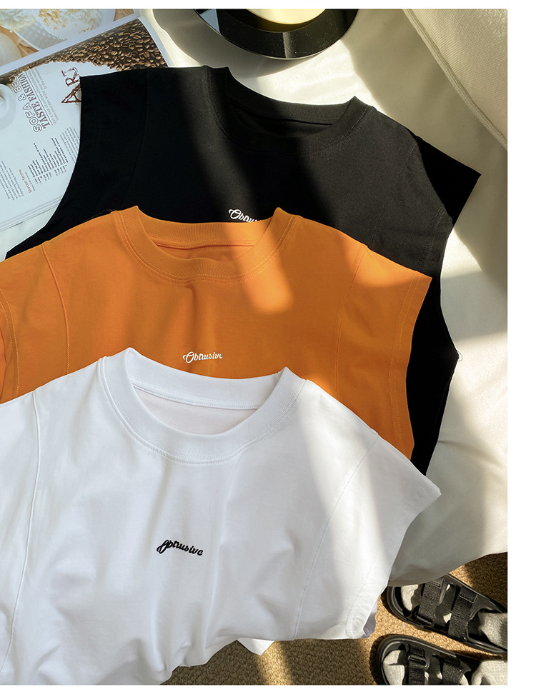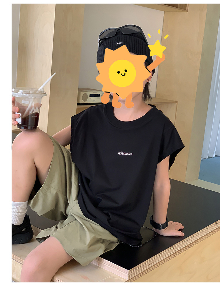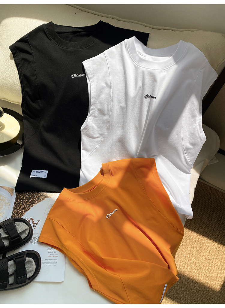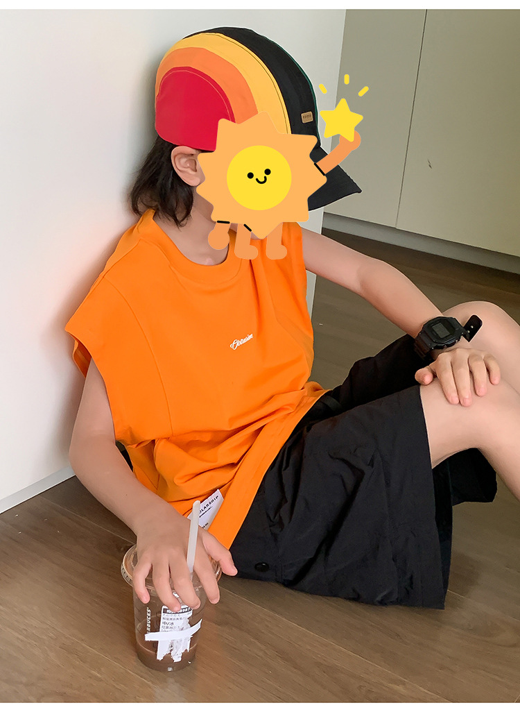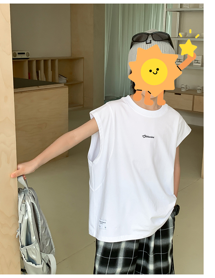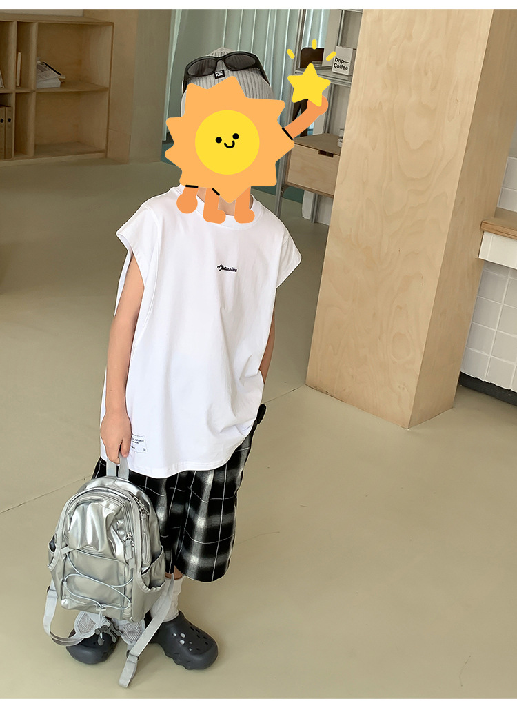 男の子の夏の丸襟の袖なしtシャツ学生の純色の純綿は肩のファッションブランドのベストを挿して薄い金を編みます。