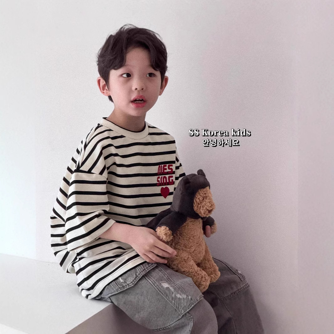 夏の新型韓国版百合中大童夏服ストライプ半袖tシャツ子供服2025男女子供ファッションクール上着