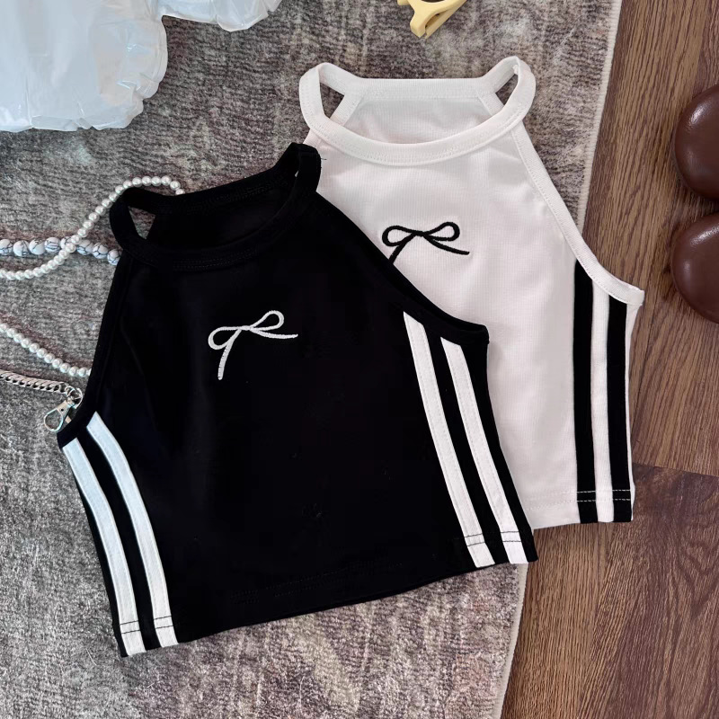女の子の夏のベストサスペンダーベビーファッショナブルな子供の個性トレンディな韓国スタイルのストライプリボンホルターネックショートトップ
