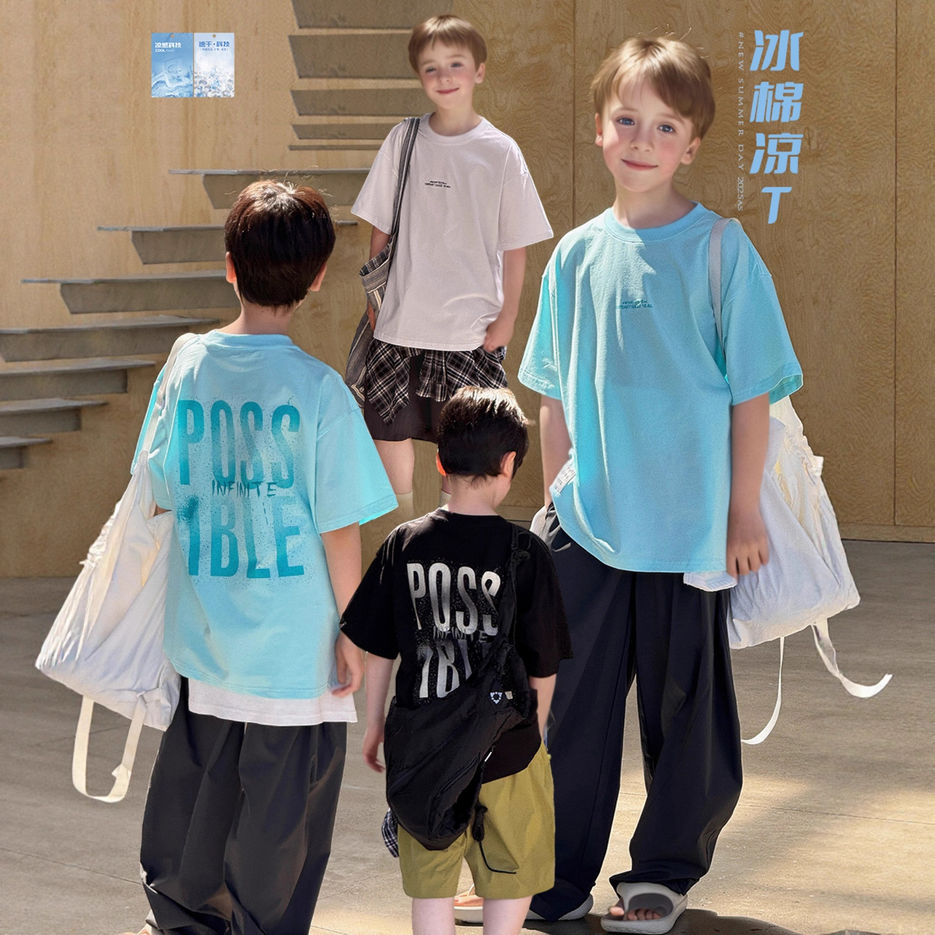 クールコットン子供服 2025 新しい子供用 Tシャツ夏スタイル男の子半袖中大男の子ハンサムで快適な半袖