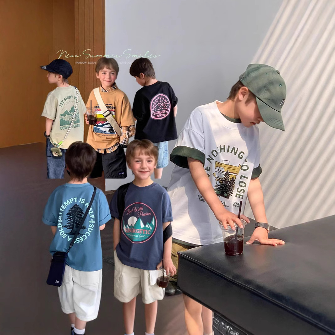 山系子供服子供プリント半袖tシャツ男児夏上着2025新型中大童赤ちゃん半袖潮