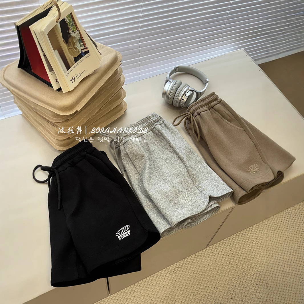 子供用カジュアルパンツ2025夏の女の子のゆるいパンツ男の子の薄いタイプの5分のズボン