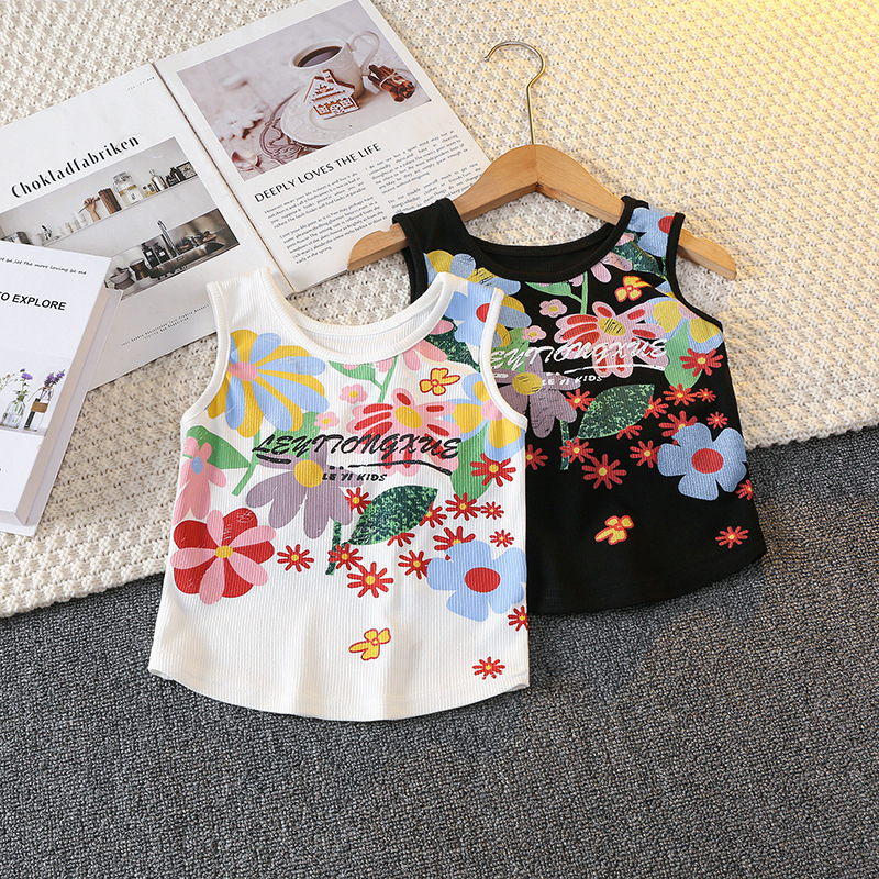 夏季新款女童背心儿童吊带涂鸦太阳花洋气中大童上衣夏装外穿潮款