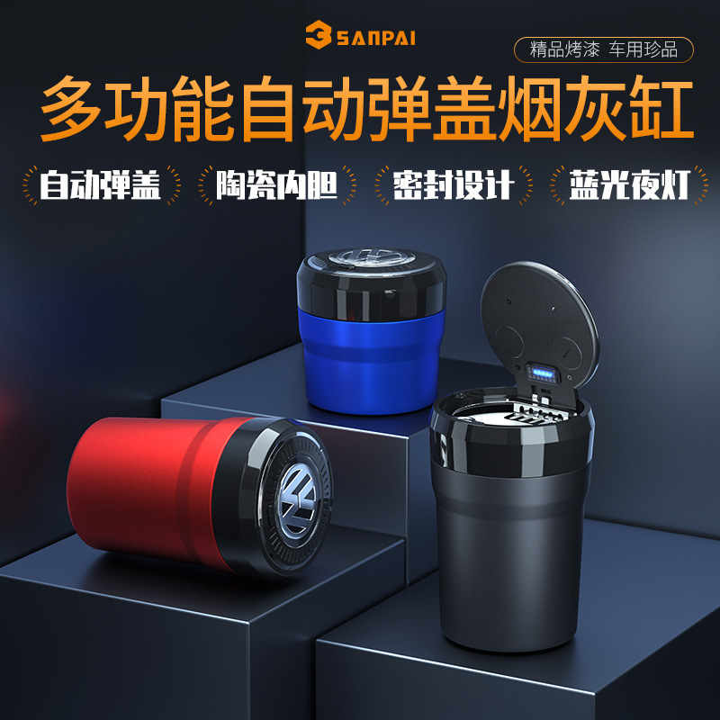 ネット赤自動弾蓋LED青灯は便利な車載灰皿を洗浄できる