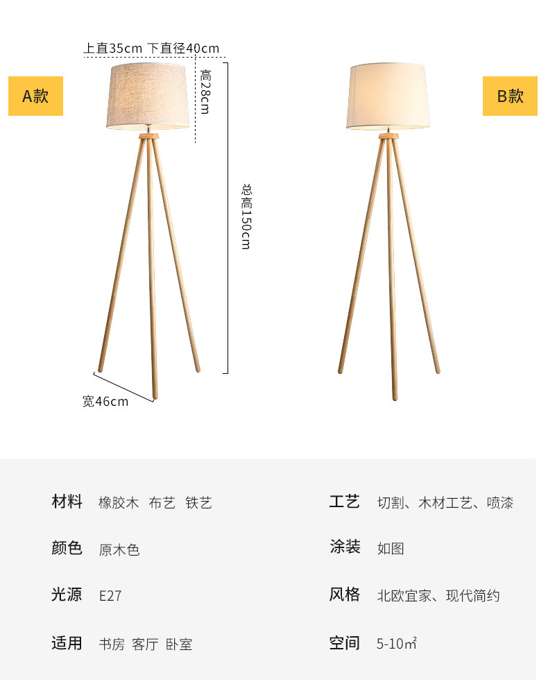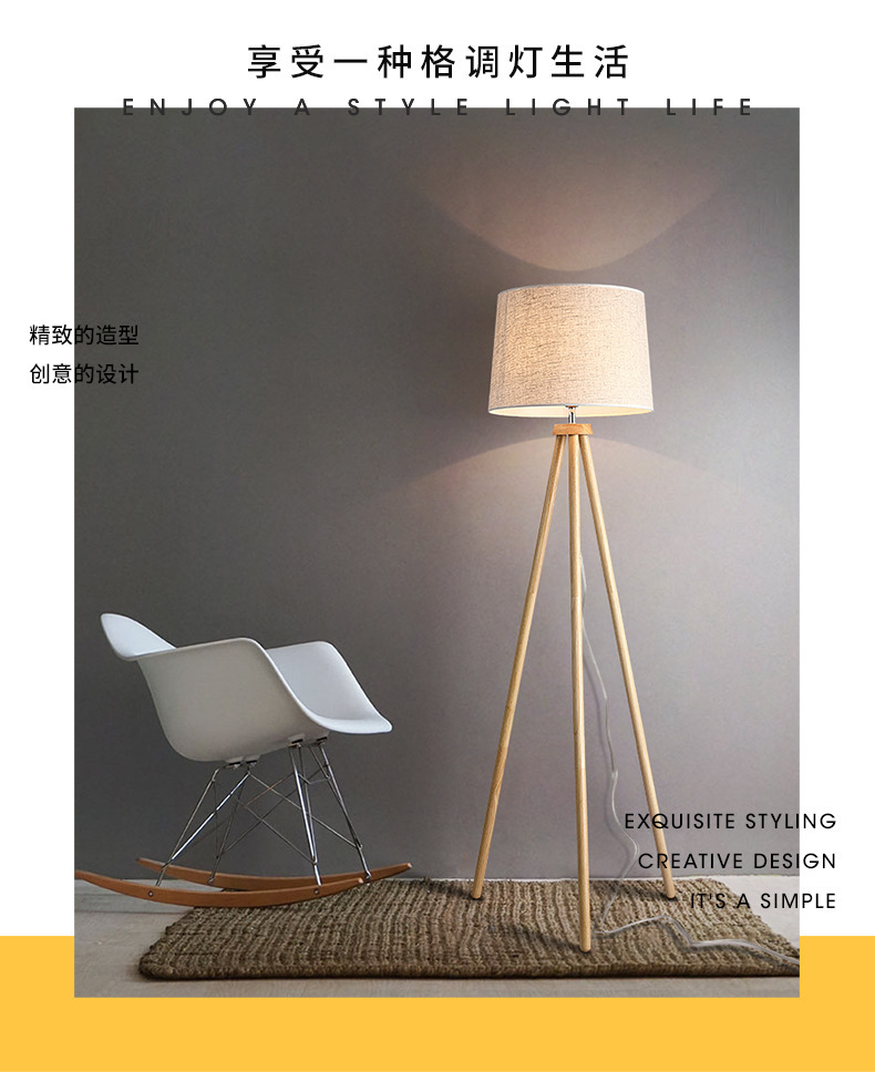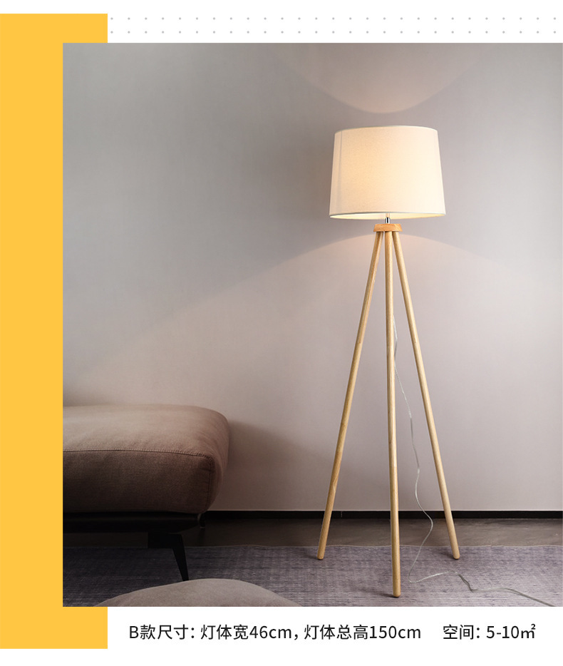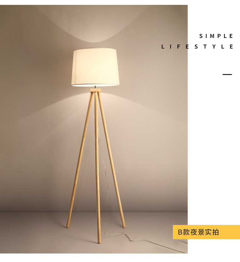 北欧木芸実木床灯客間寝室ベッドヘッドランプシンプル現代創意ファッション立式台地灯