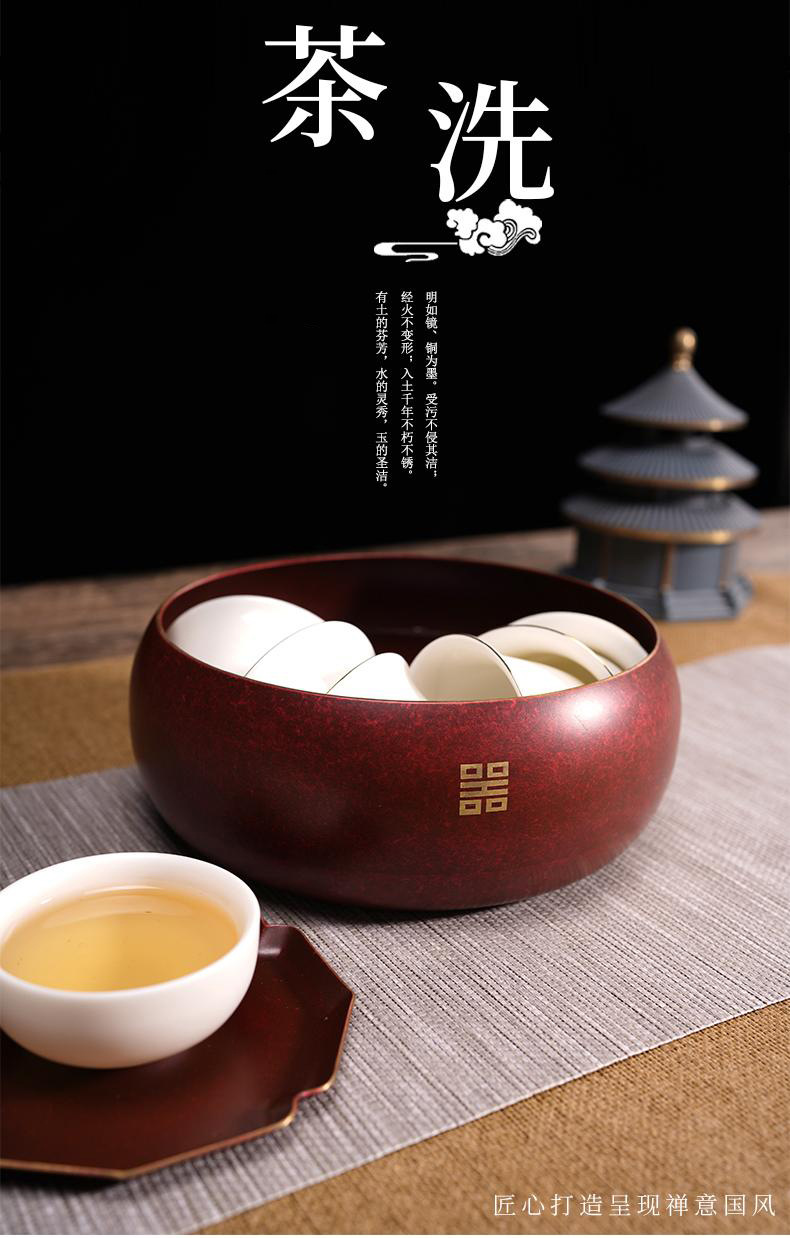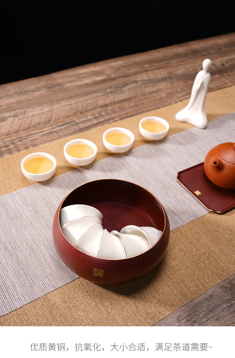 銅木香一心茶洗建水家庭用濾過茶滓桶蓋付き茶鉢レトロ茶筒乾泡茶道部品