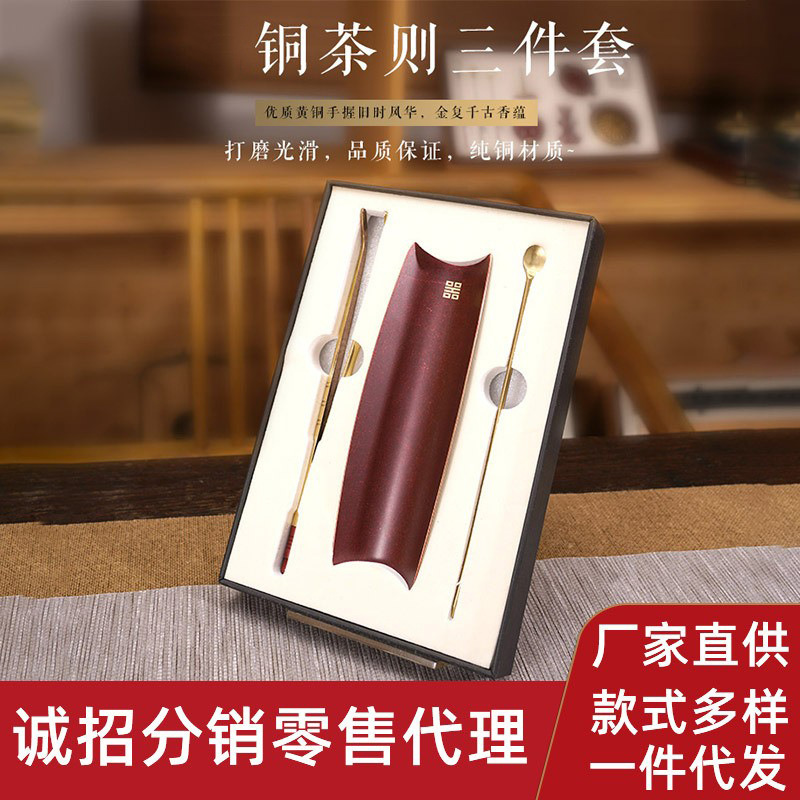 銅木香純銅茶則三点セット禅意茶芸賞茶シャベル茶匙茶撥茶荷茶挟み茶道部品