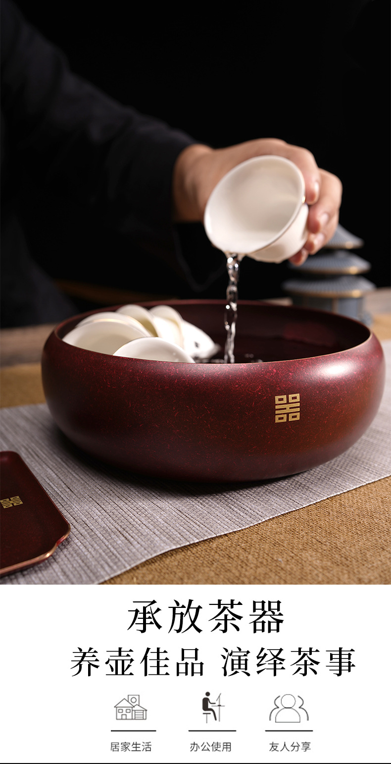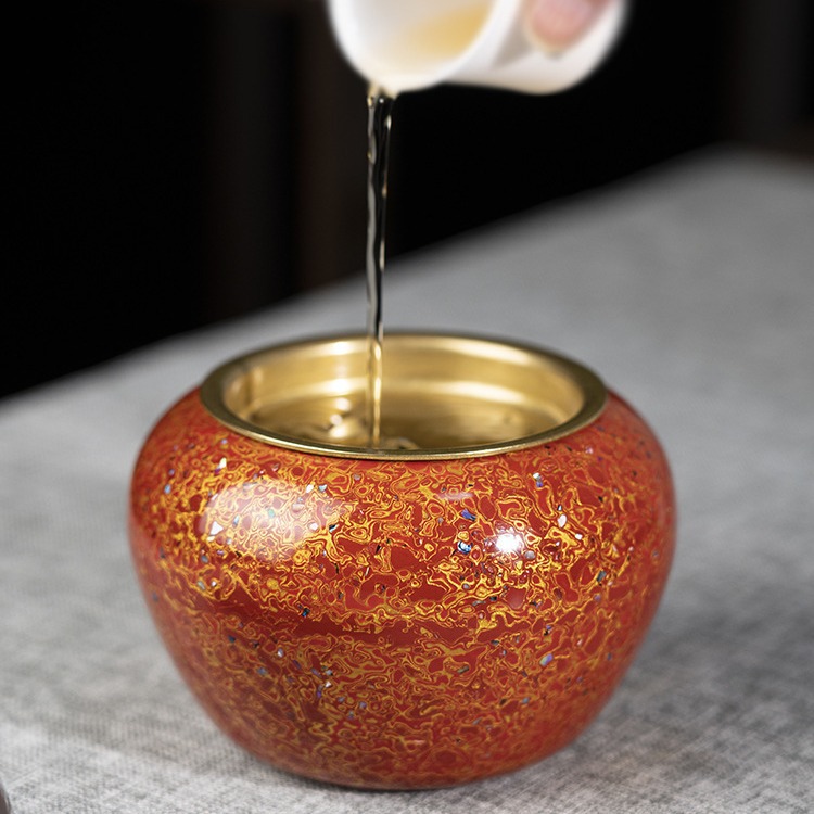 銅の木の香の大きい漆は水のお茶を建てて黄銅の廃水のかめの家庭の室内のお茶の水のかめの中国式の復古のアイデアのお茶のかすのかめを洗います。