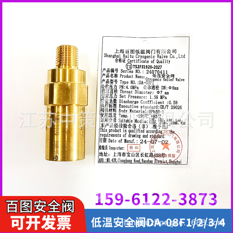杜瓦缶安全弁上海百図低温高低圧1.59/2.41mpa杜瓦瓶圧力弁DA-08