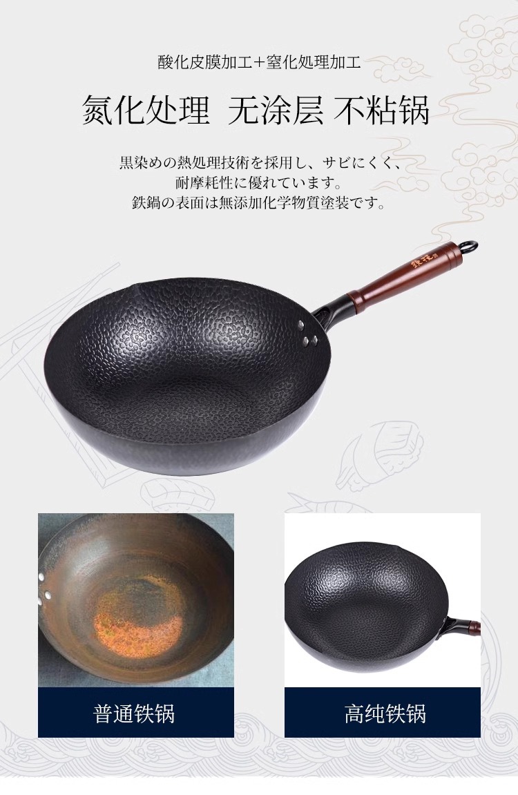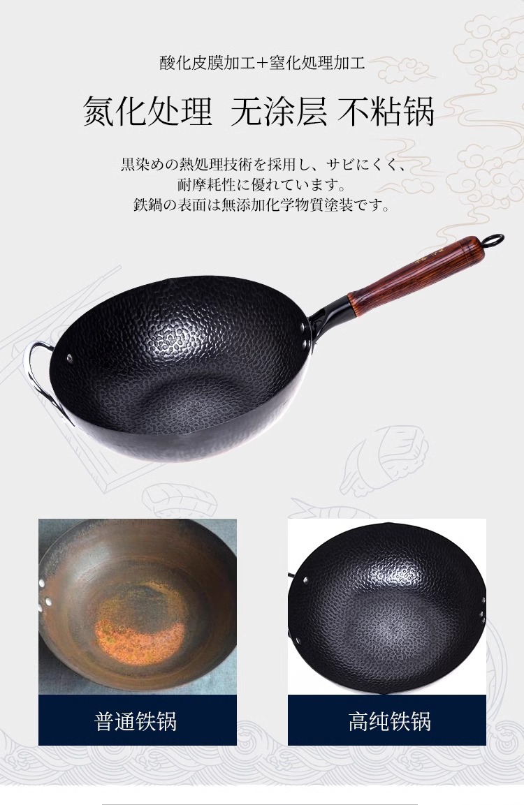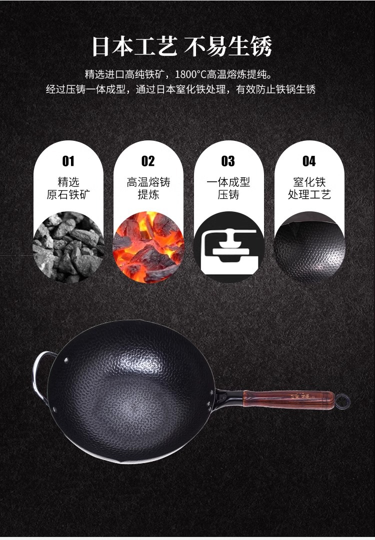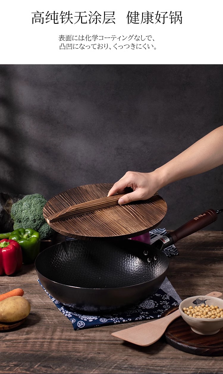 日本オリジナル輸入軽量中華鍋未塗装家庭用調理錬鉄鍋丸底ガスストーブは鍋にくっつきにくい