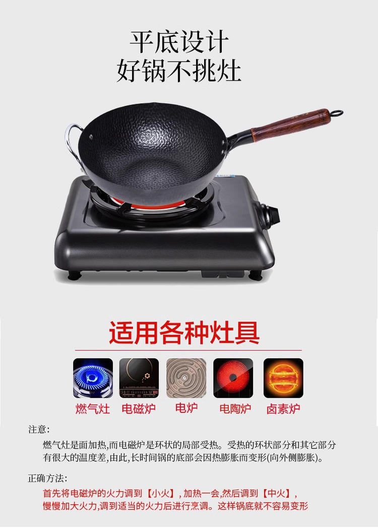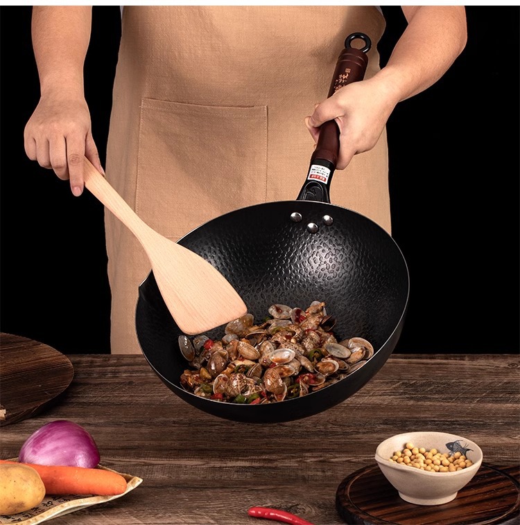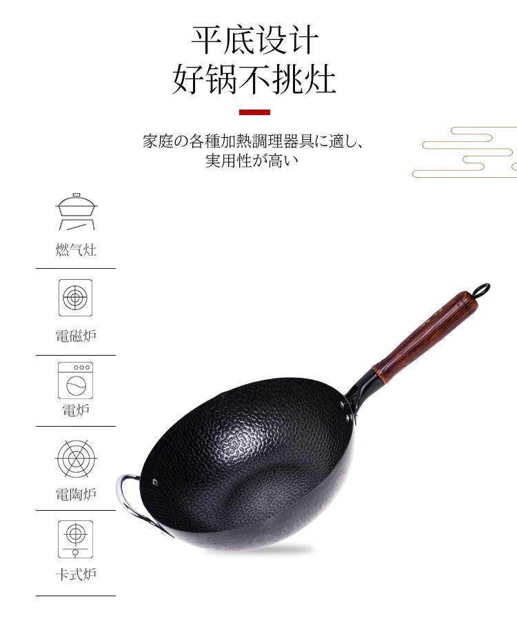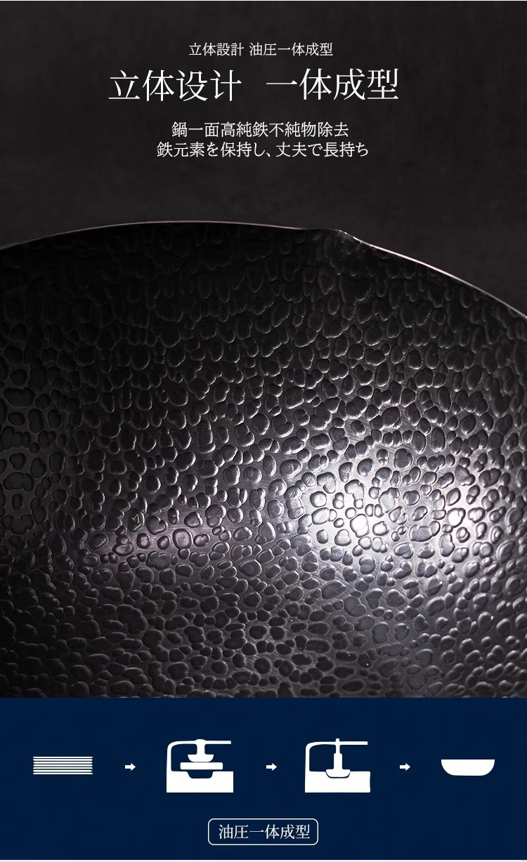 日本オリジナル輸入軽量中華鍋未塗装家庭用調理錬鉄鍋丸底ガスストーブは鍋にくっつきにくい