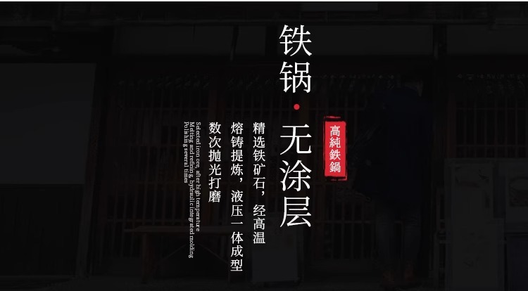 禾惠32cm日式无涂层极铁锅炒菜锅日本千元级同款送木盖轻量化锅体