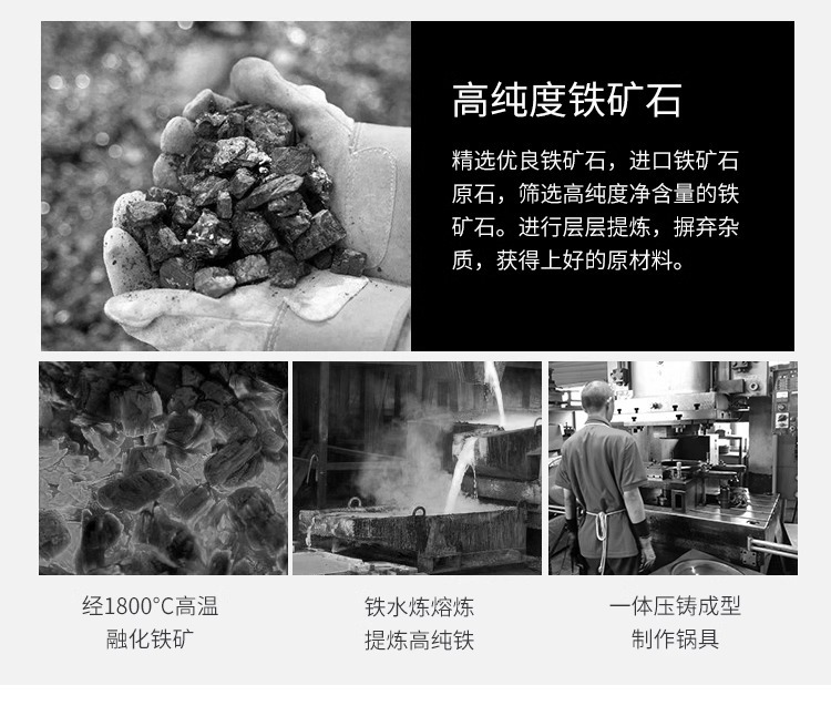 日本の輸入の鉄の技術はコーティングがなくて、鍋の家庭用ガスの電磁ストーブの通用の鍋のフライパンの鉄の鍋にくっつきにくいです。