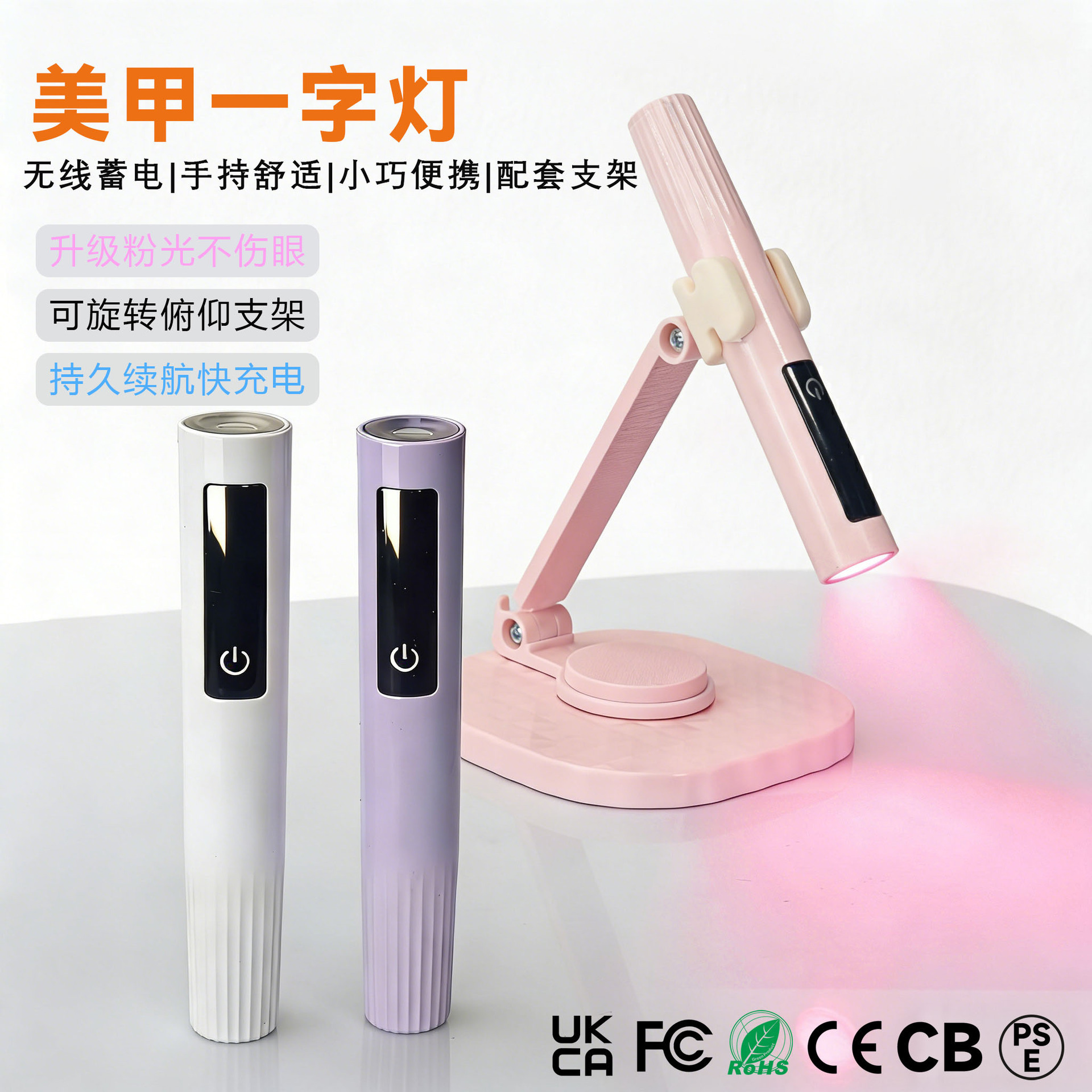 小型一字灯手持便携式蓄电指甲贴片光疗灯速干美甲灯自由旋转支架