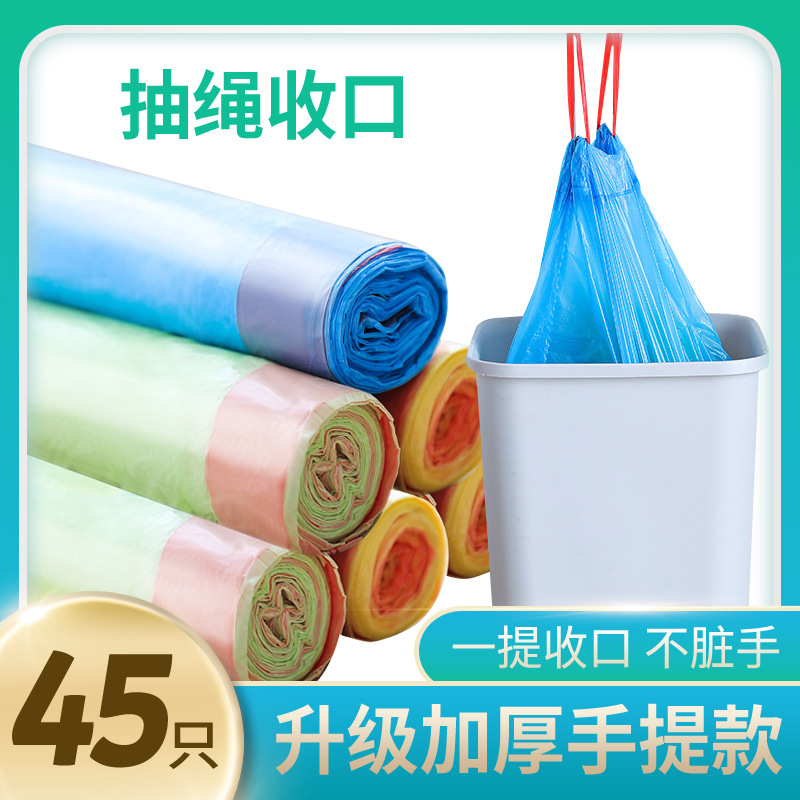 ロープを引くゴミ袋は携帯式自動で口を閉じて清潔にします。