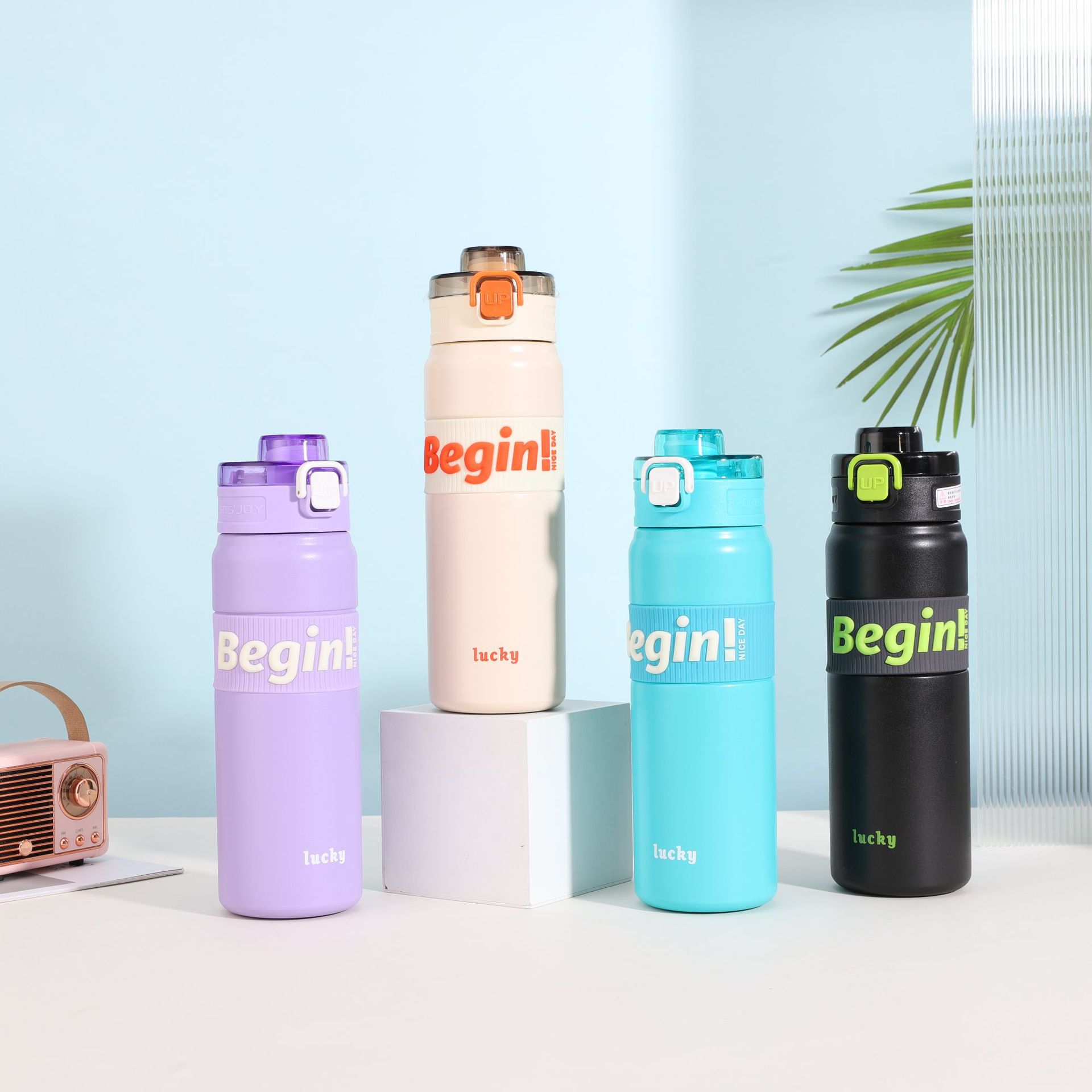 新款简约运动高颜值水杯316不锈钢保温杯礼品双饮软吸管弹跳杯