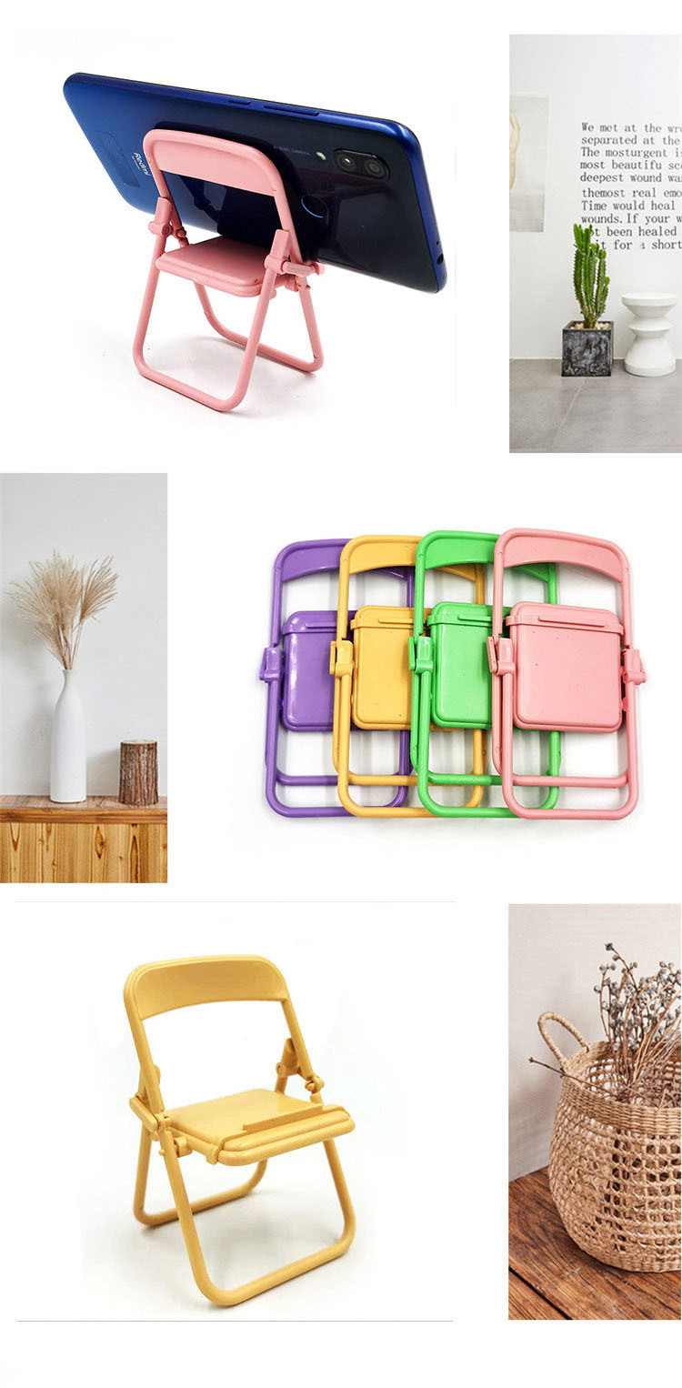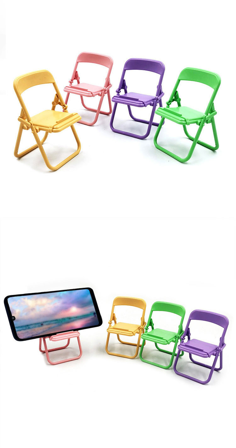 インクリエイティブ小さな椅子携帯電話ホルダーマカロンカラー折りたたみ怠惰なスツールデスクトップスタンドプリントロゴ