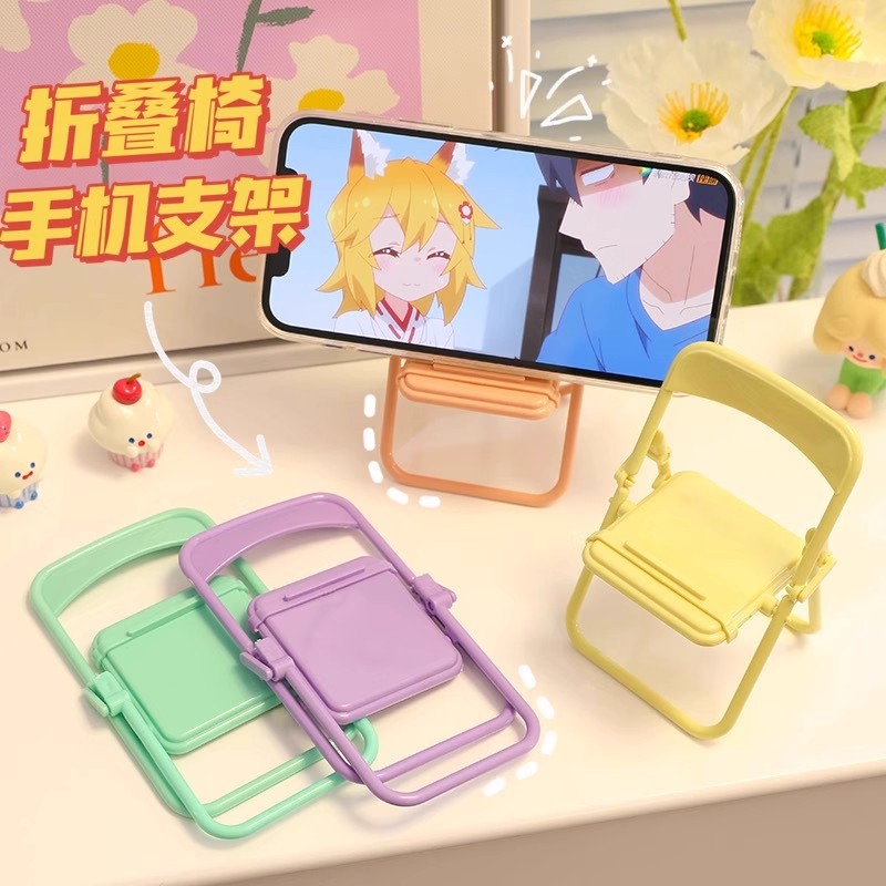 ins椅子手机支架桌面便携折叠凳子支架马卡龙可爱创意小椅子支架