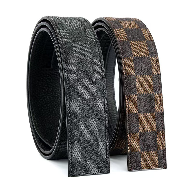 ベルトの男性の新型の格子縞の頭の層の牛革の平頭のベルトの男性の百合の装飾のビジネスの高級感のズボンは潮を帯びます。