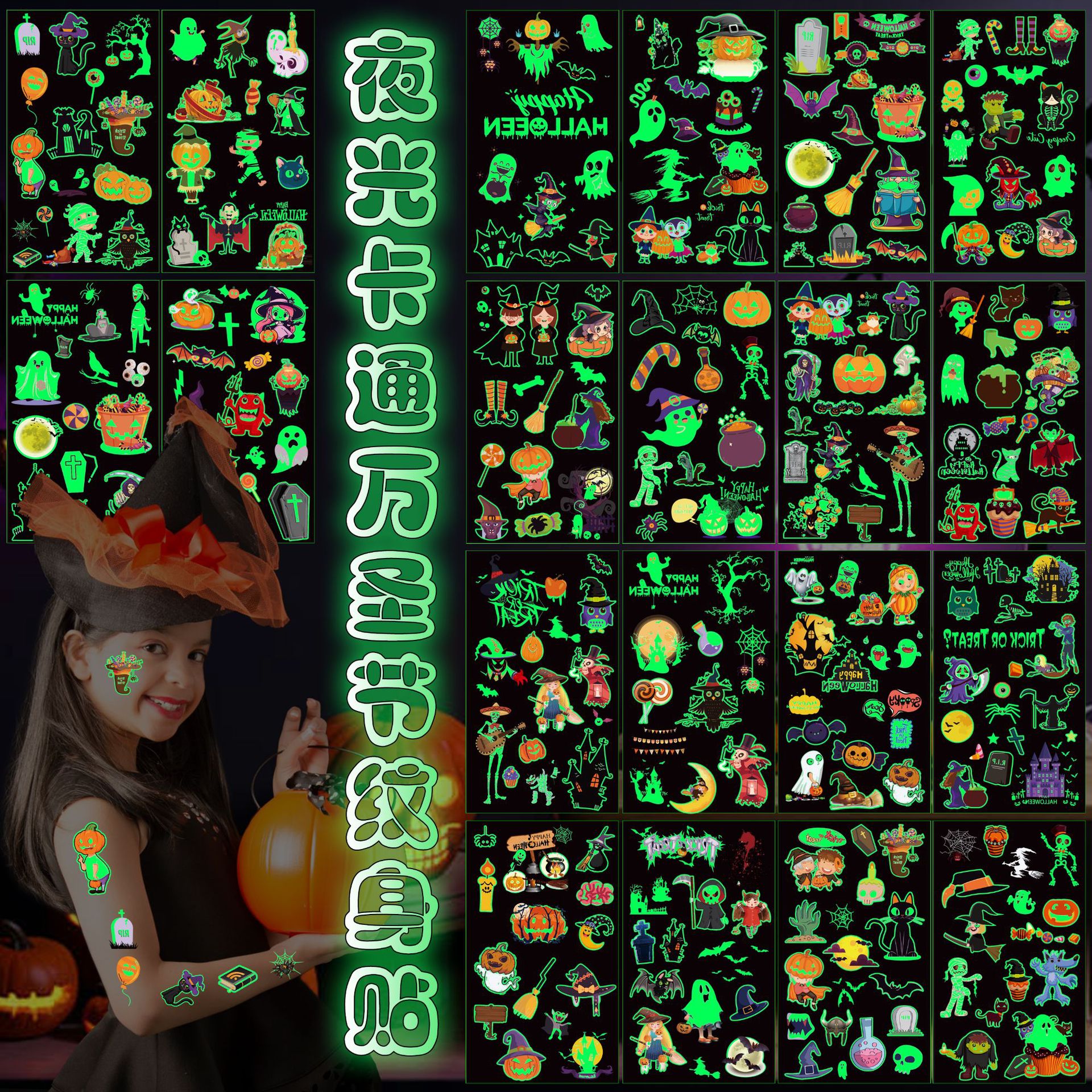 跨境新款夜光万圣节圣诞节纹身贴卡通派对聚会节日活动纹身贴纸