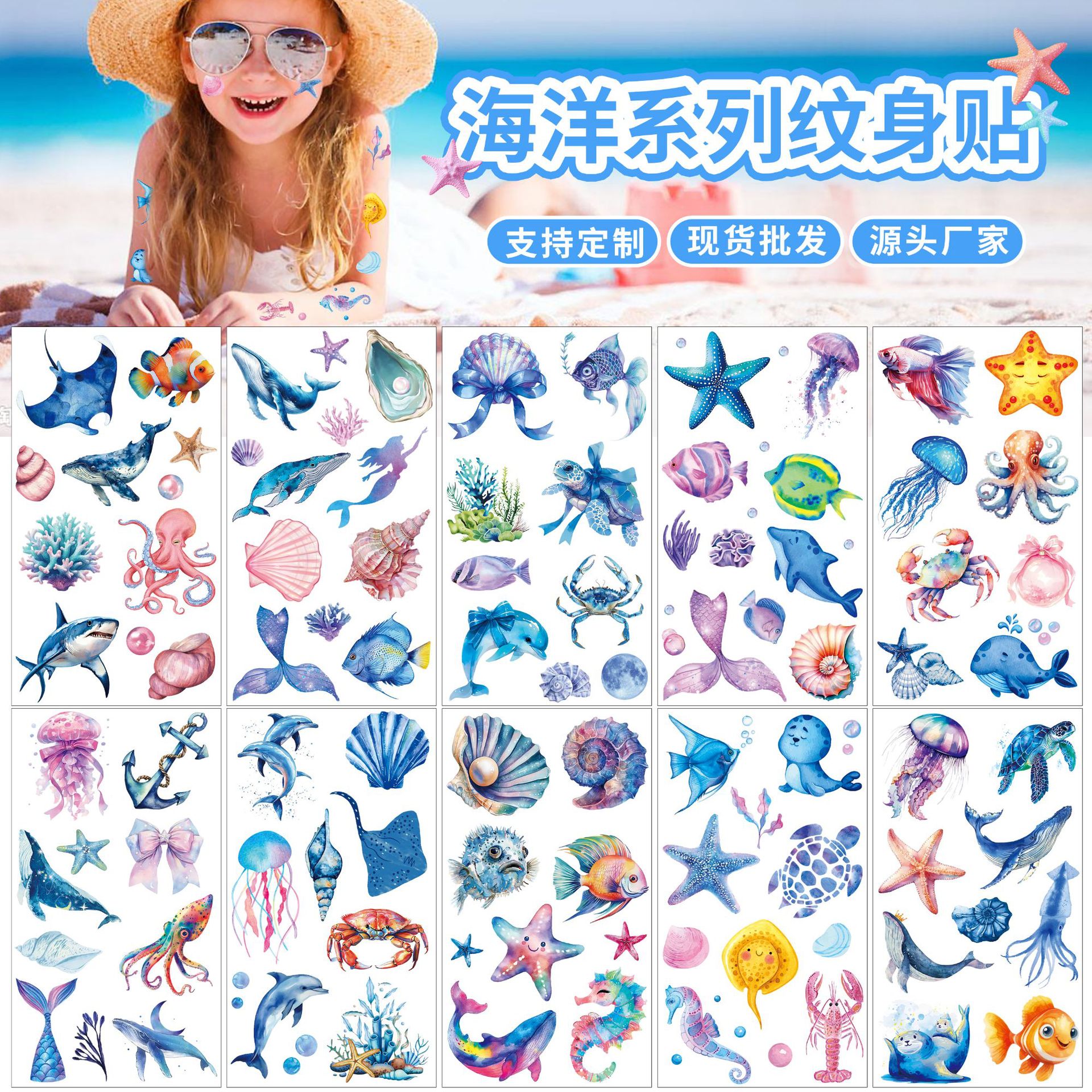 国境を越えた新しい子供用舞台用フェイスステッカー、タトゥーステッカー、高級感のあるハワイ風漫画の海洋動物ステッカー