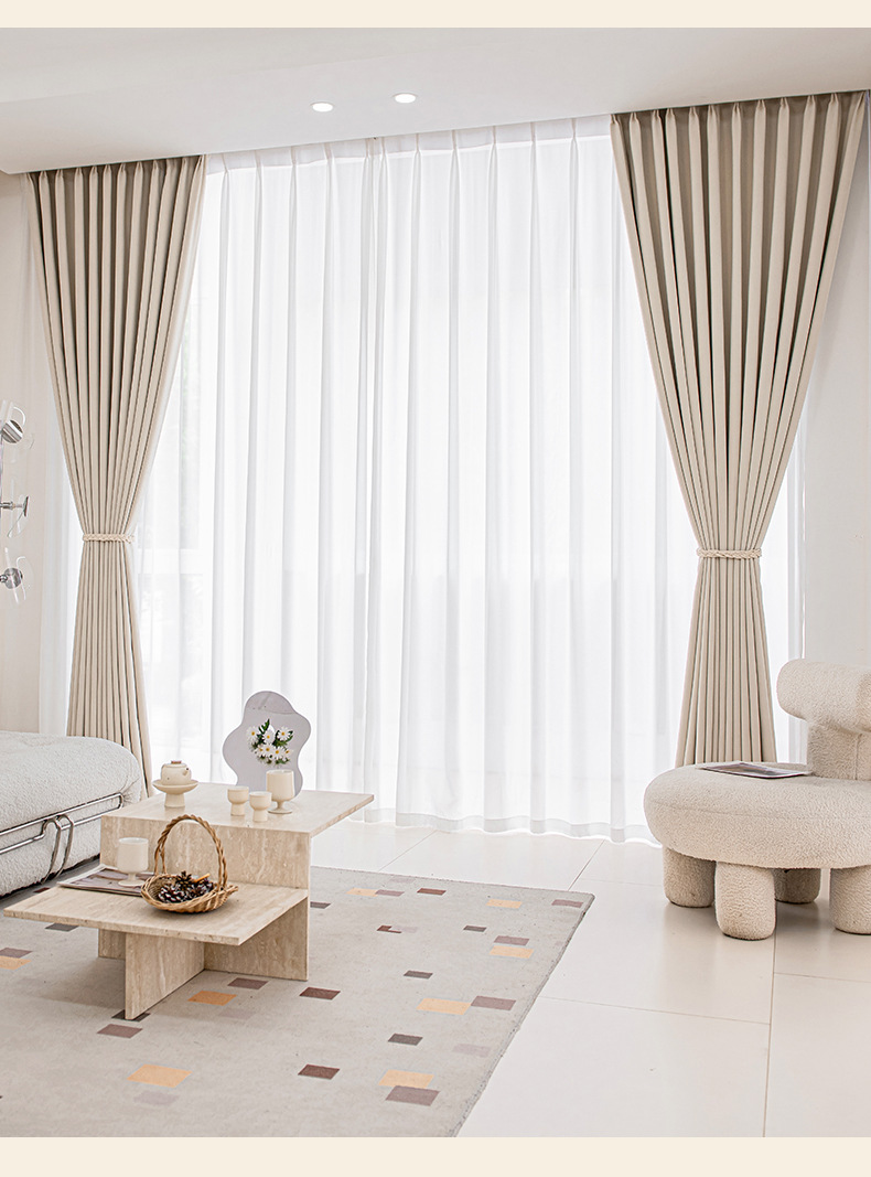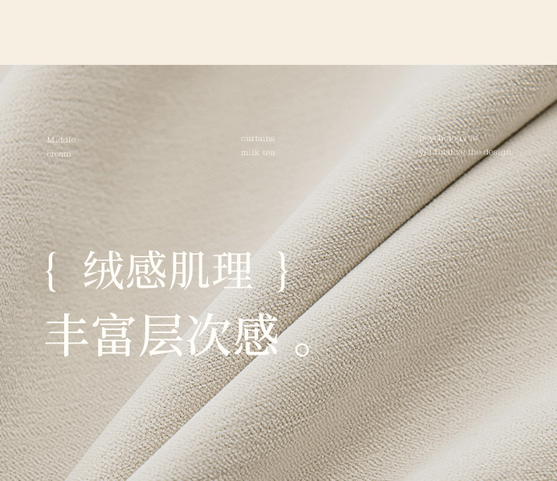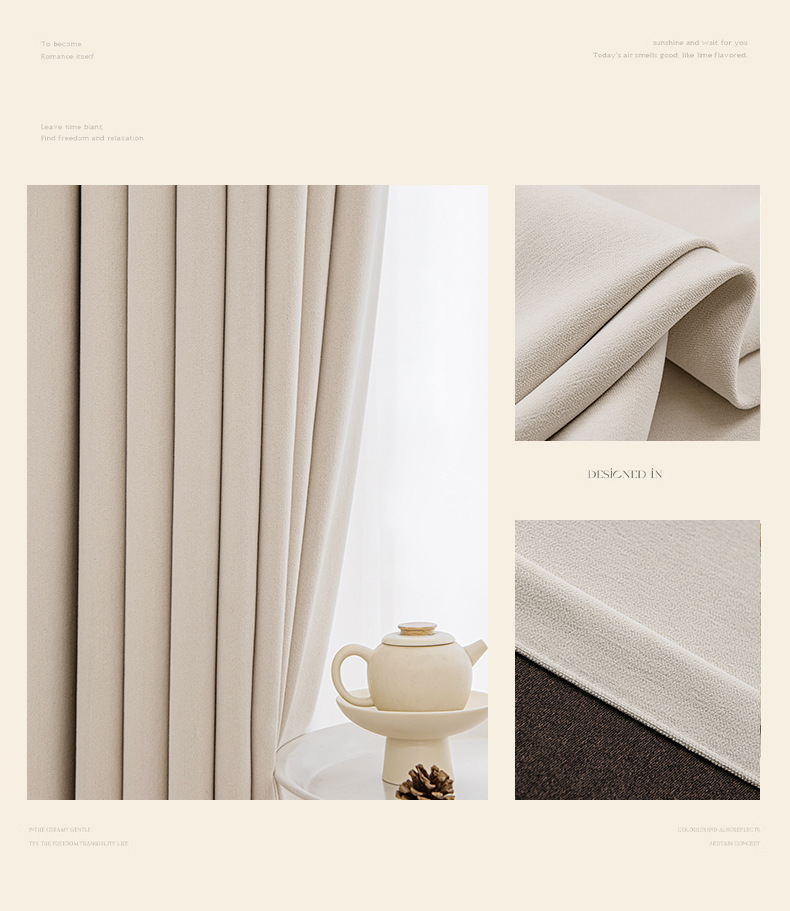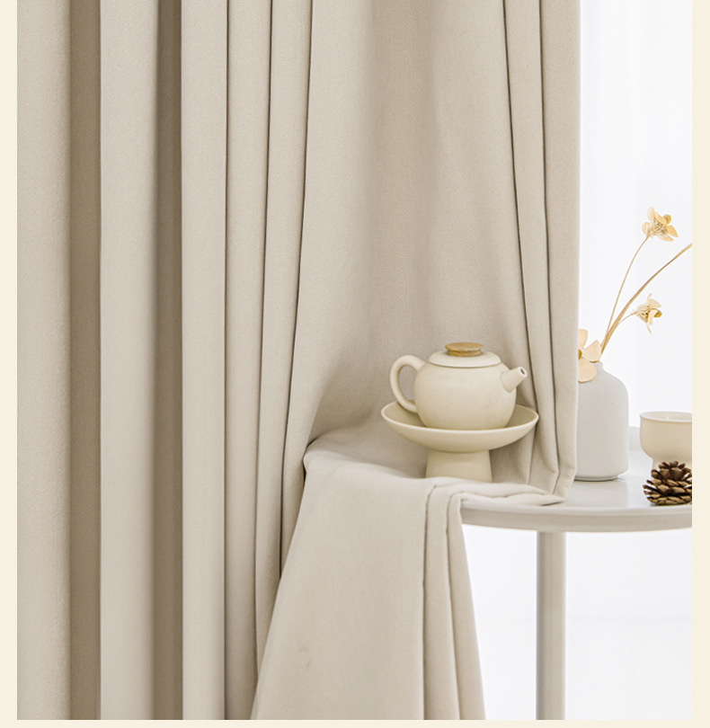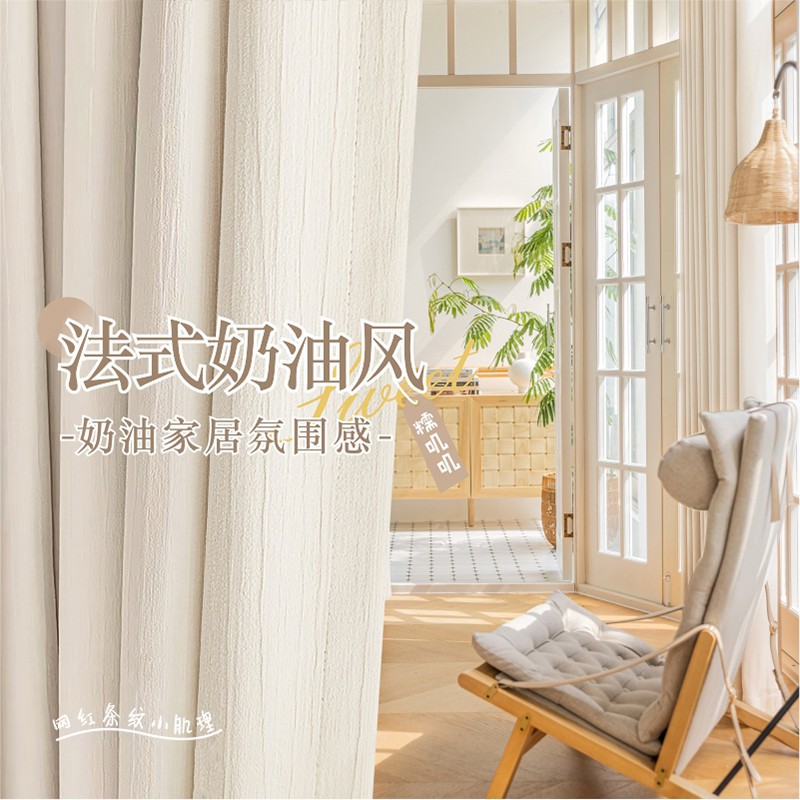 シェニール遮光カーテンクリーム色シワ筋理フランス現代シンプルリビング寝室書斎新製品