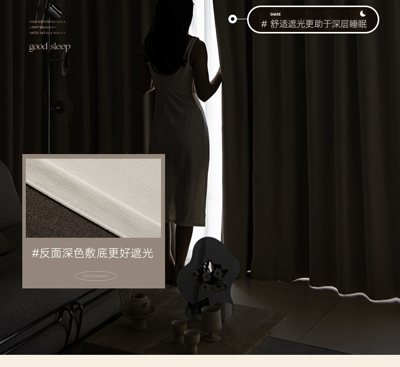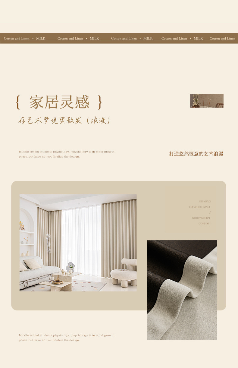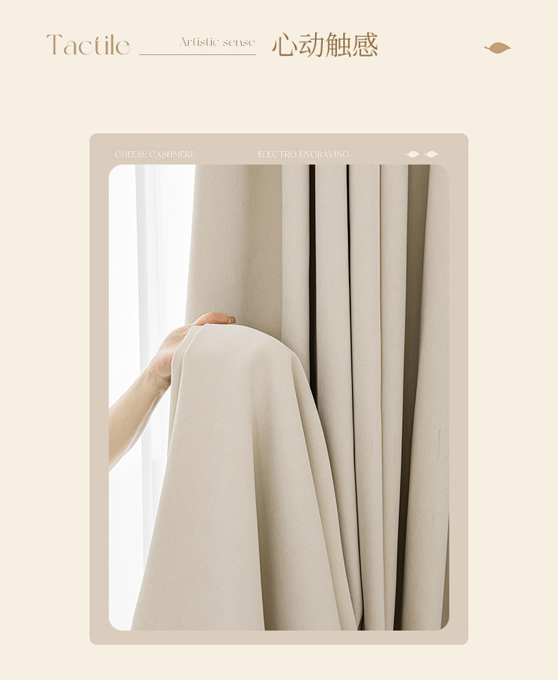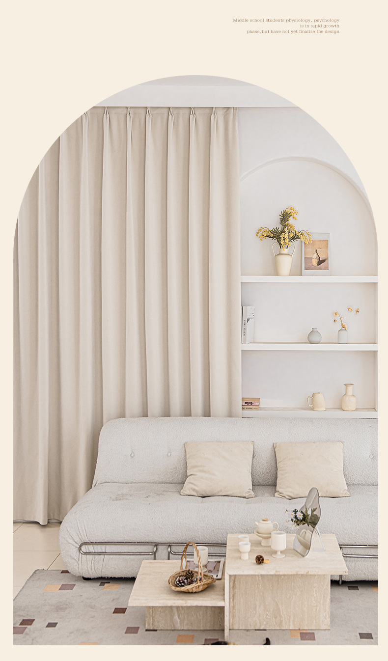 シェニール遮光カーテンクリーム色シワ筋理フランス現代シンプルリビング寝室書斎新製品