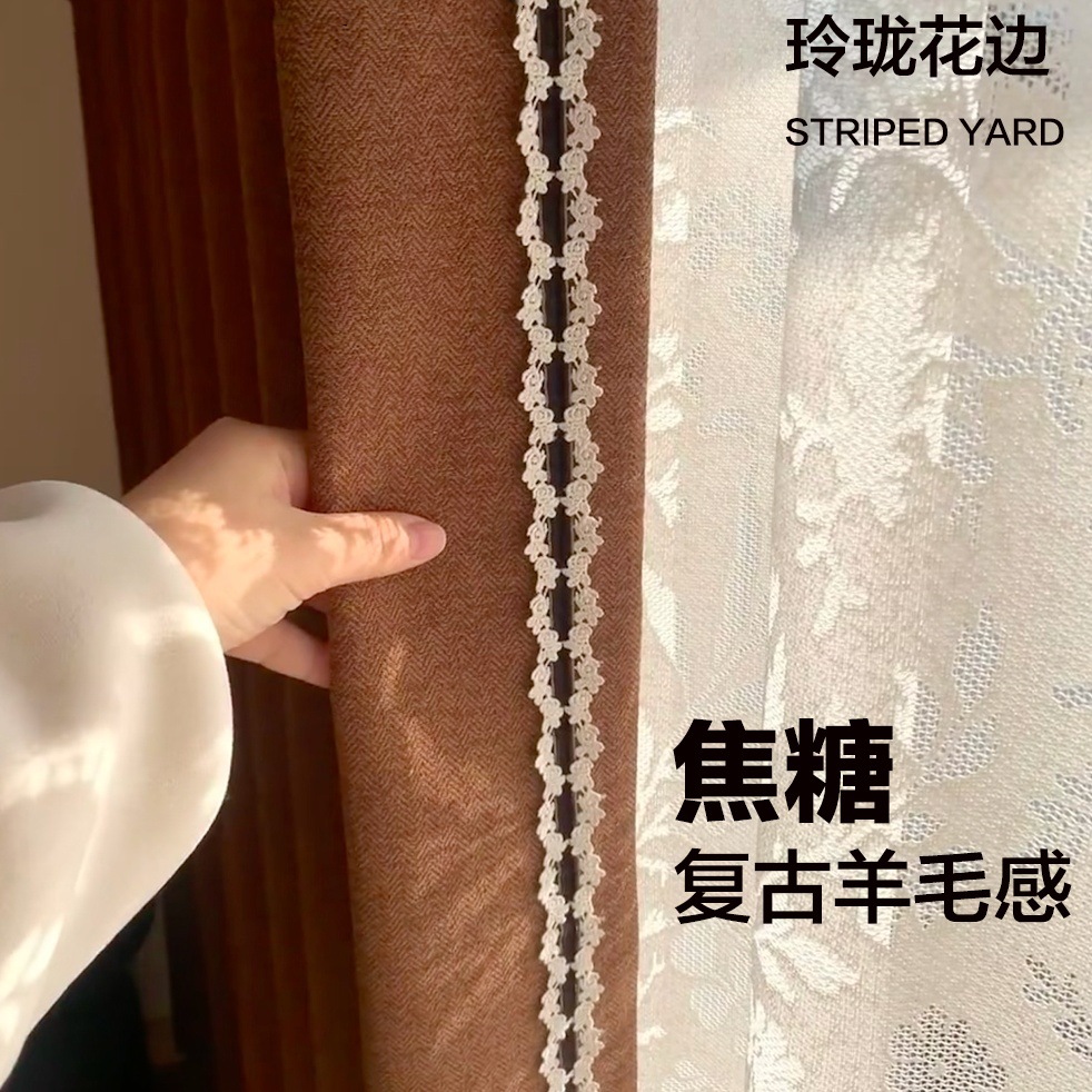 2025 フレンチミッドセンチュリースタイルカーテンウールベルベットテクスチャ寝室リビングルームキャラメルシェニール遮光カーテン生地