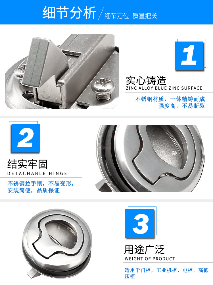 MS739-3/2丸型埋め込み式パネルロック ハンドル衝撃ロック キャンピングカー内外ドアロック ハイタンキャビネットロック
