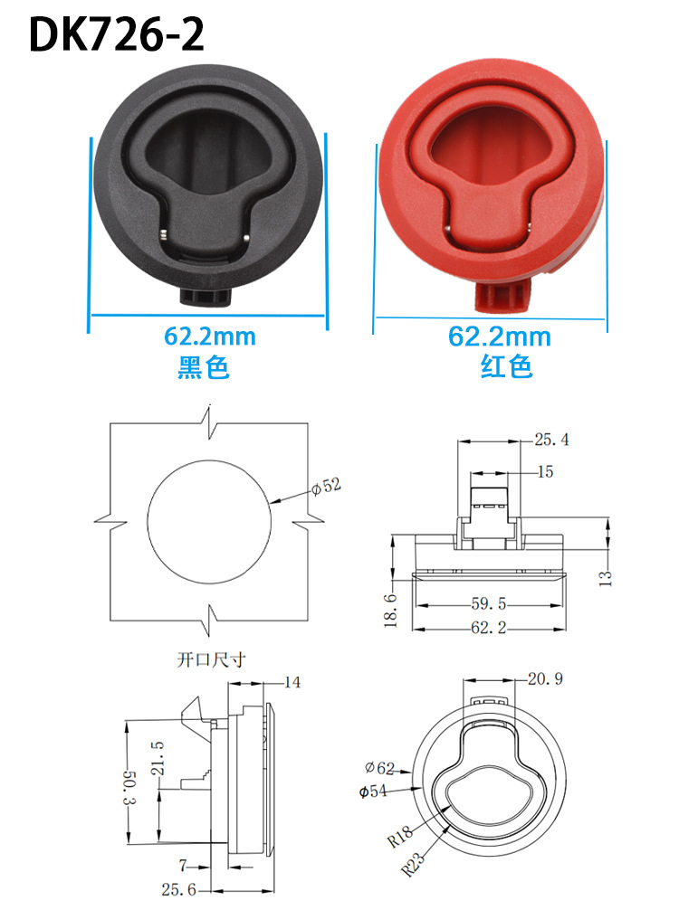 Rvプラスチック丸型プルロック救急車ブラックホワイトm1埋め込み式プル隠れ家式スナップフラットロック