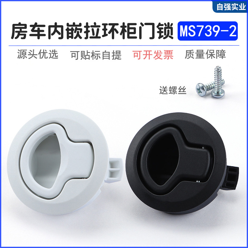 工業設備ドアms739-2引きリングロック黒色プラスチック埋め込み式救急車船室ドア円形ハンドルロック