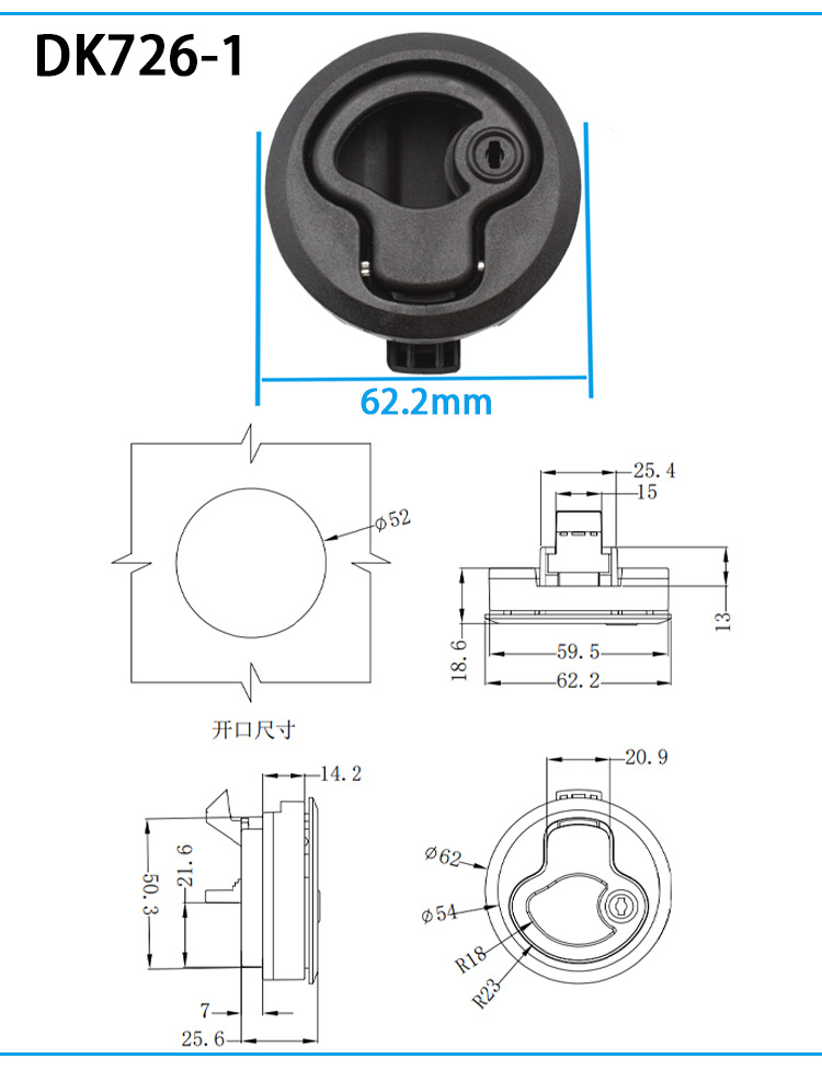 丸型プラスチック隠し埋め込み式暗ハンドルロック LS726 高速列車、RV、トレーラー、テント、キャビネット、スイッチ用ロック