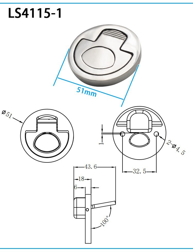 316ステンレス鋼船室丸型ハンドルロック本体フロアバックル船舶ヨット金物デッキハンドル隠し卸売