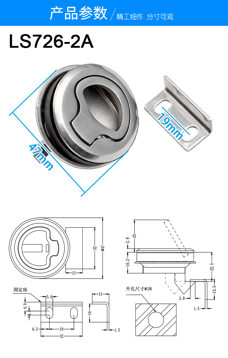 LS726内外押し埋め込み式暗取っ手ロックトレーラーテント車工業ステンレスパネルロック
