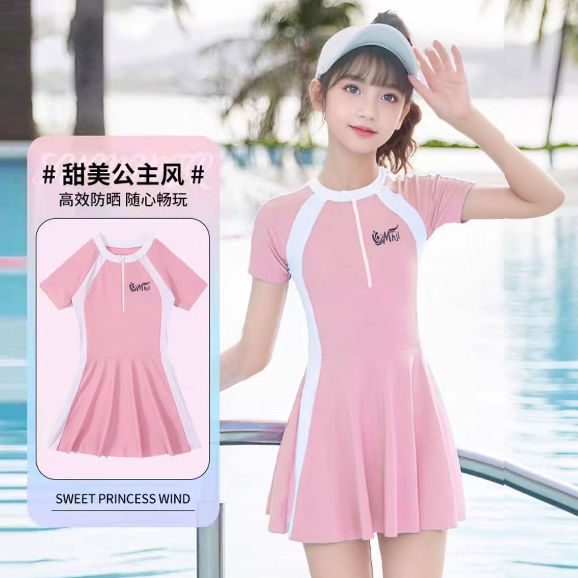 女の子水着連体2025新型日焼け止め速乾胸パッド付き水着中の子供中学生水泳装備