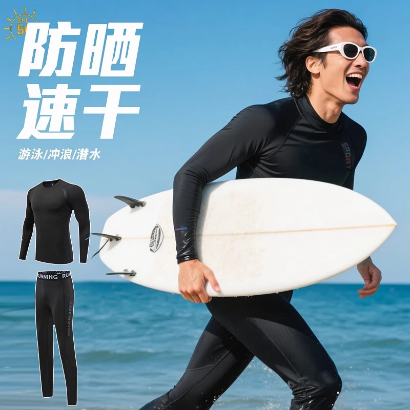 日焼け止め長袖水着男性ウェットスーツセット速乾サーフィン服大サイズ新型浮潜クラゲ服ビーチ