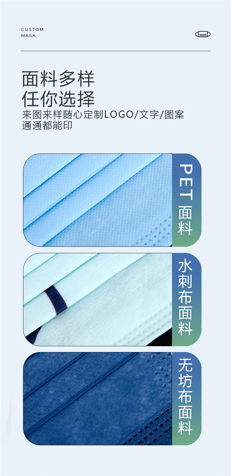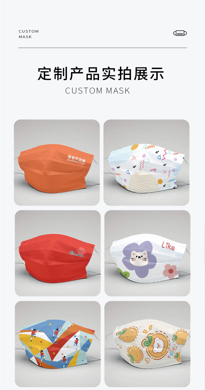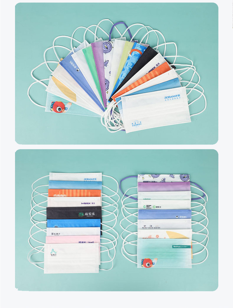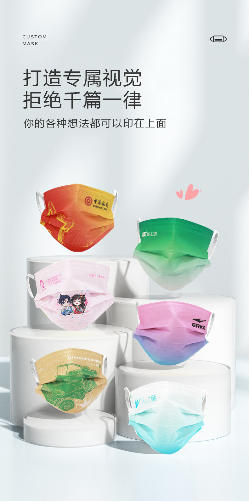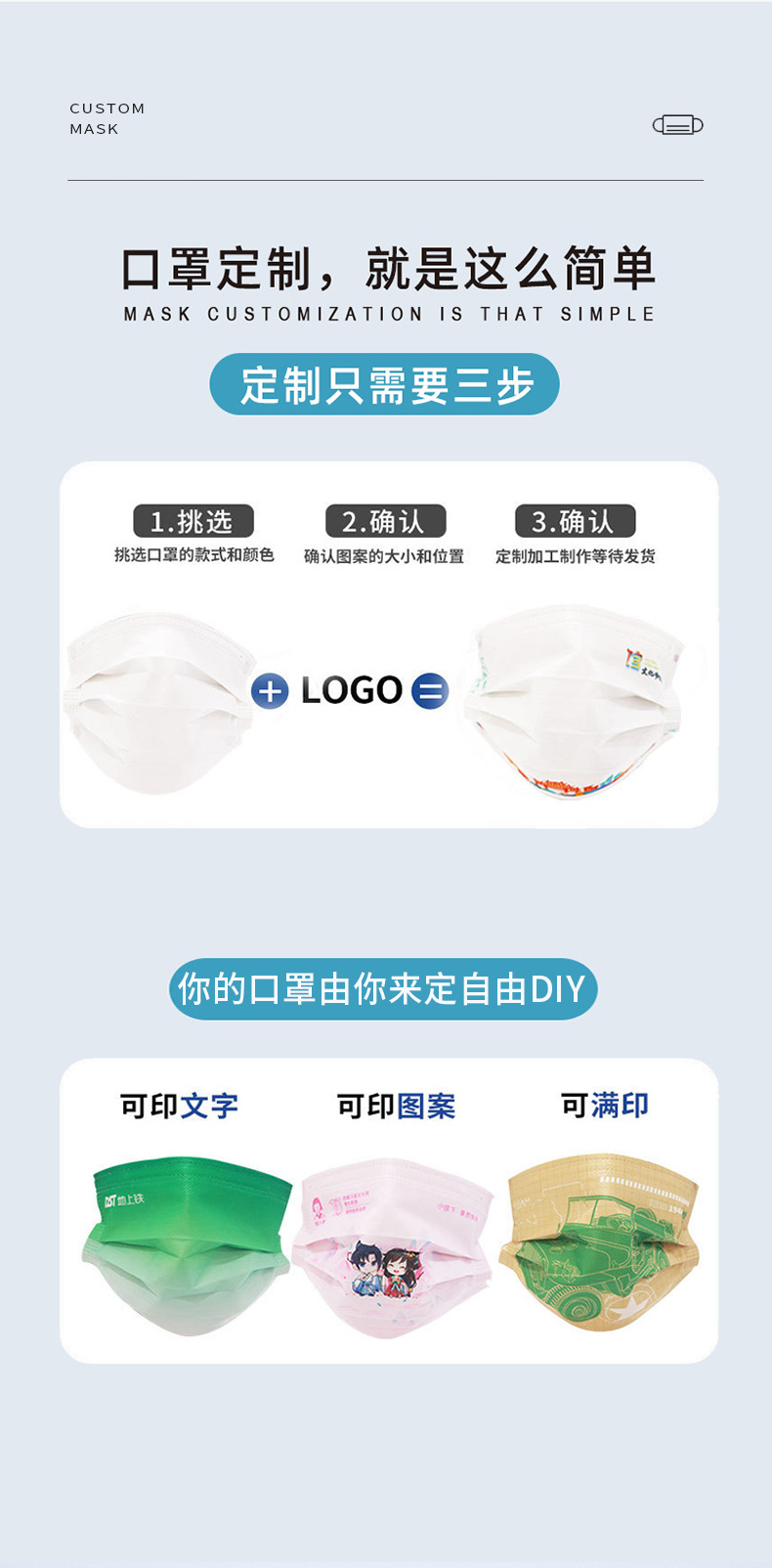 使い捨てマスク三層広告クリエイティブ独立包装色パターンlogo位置決めプリントマスクカスタマイズ