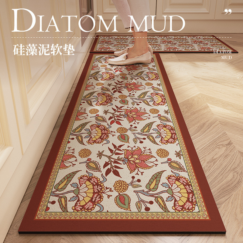 中古风厨房地垫耐脏防滑垫家用长条通铺脚垫速干吸水软硅藻泥地垫