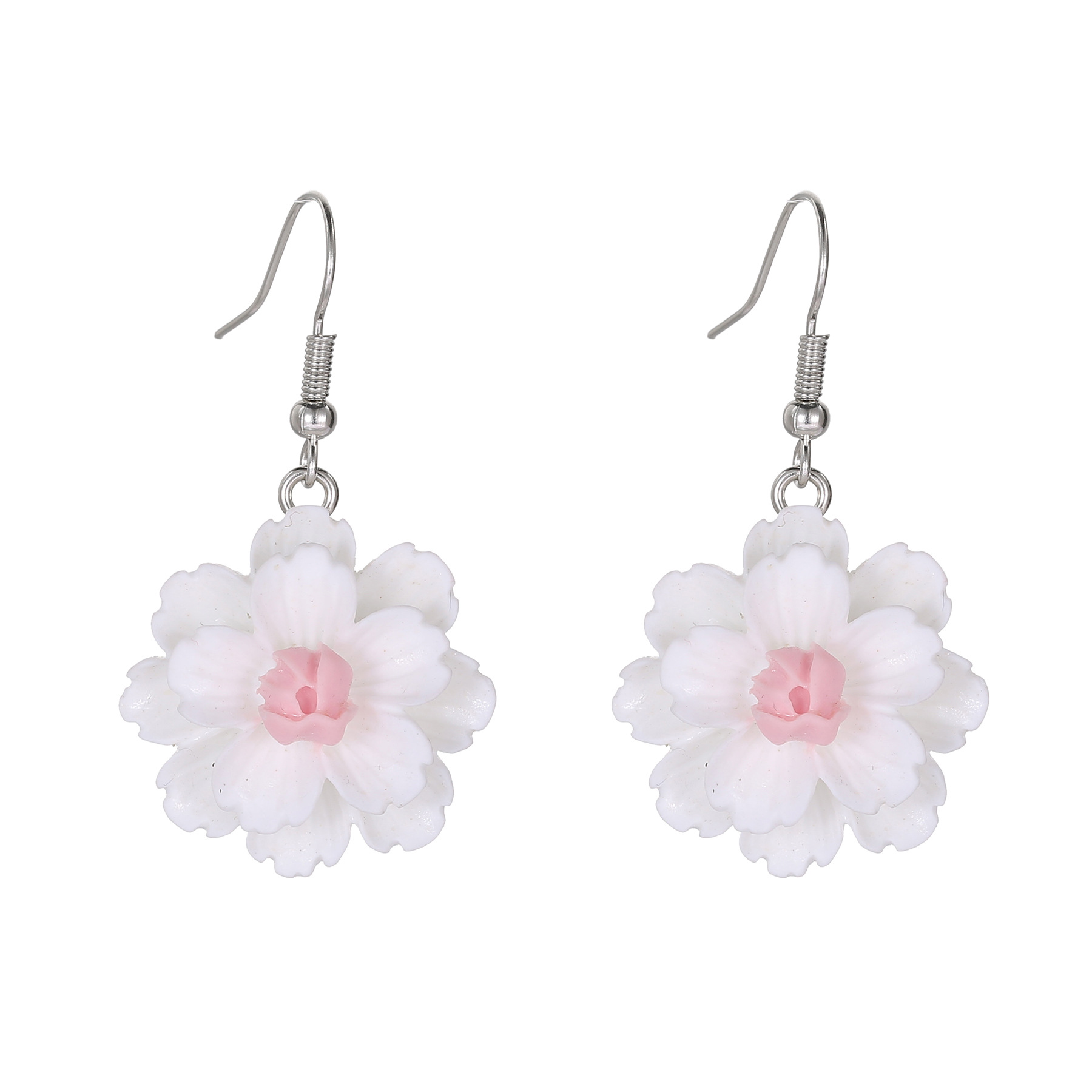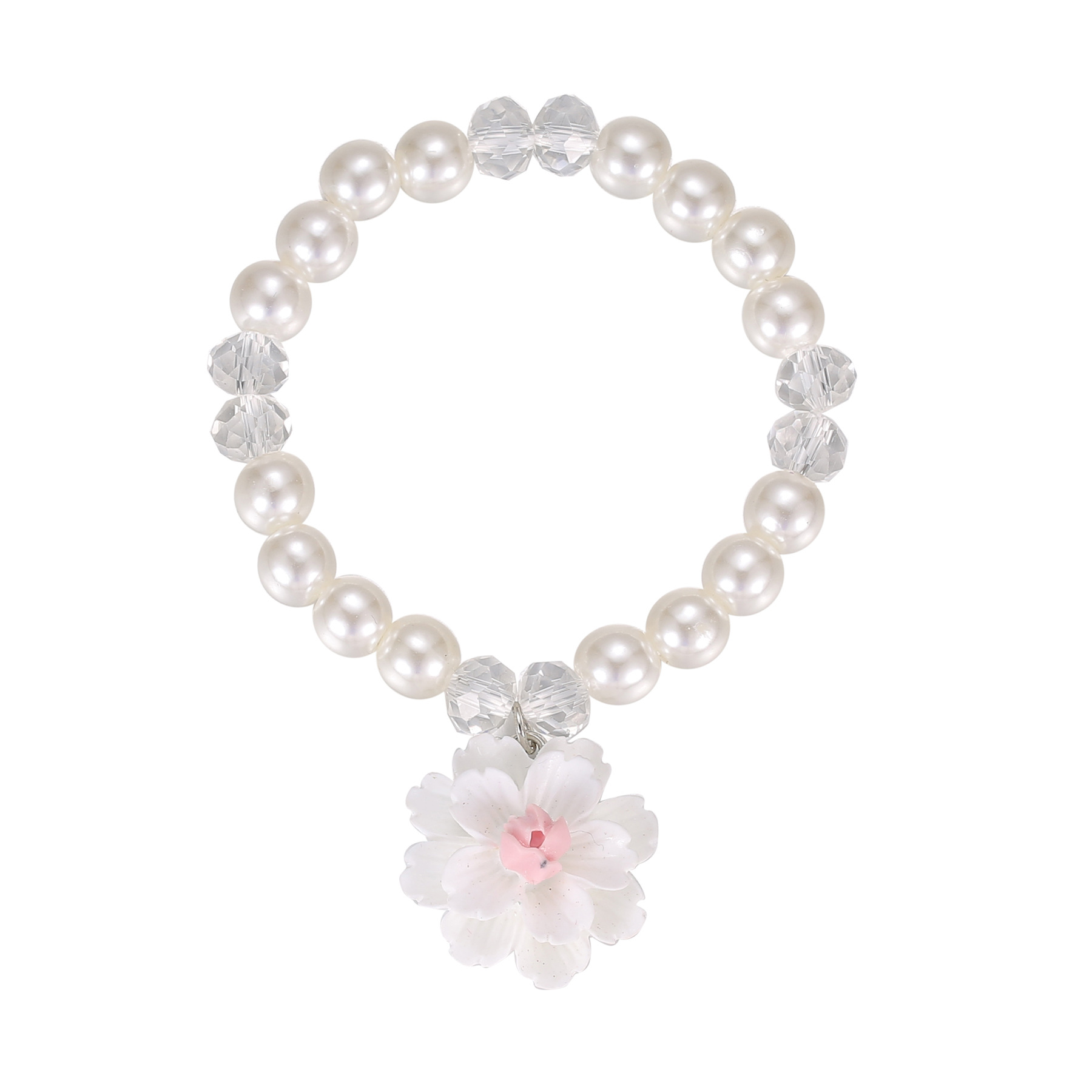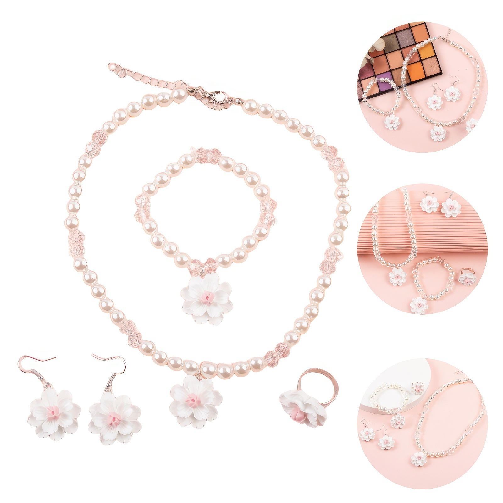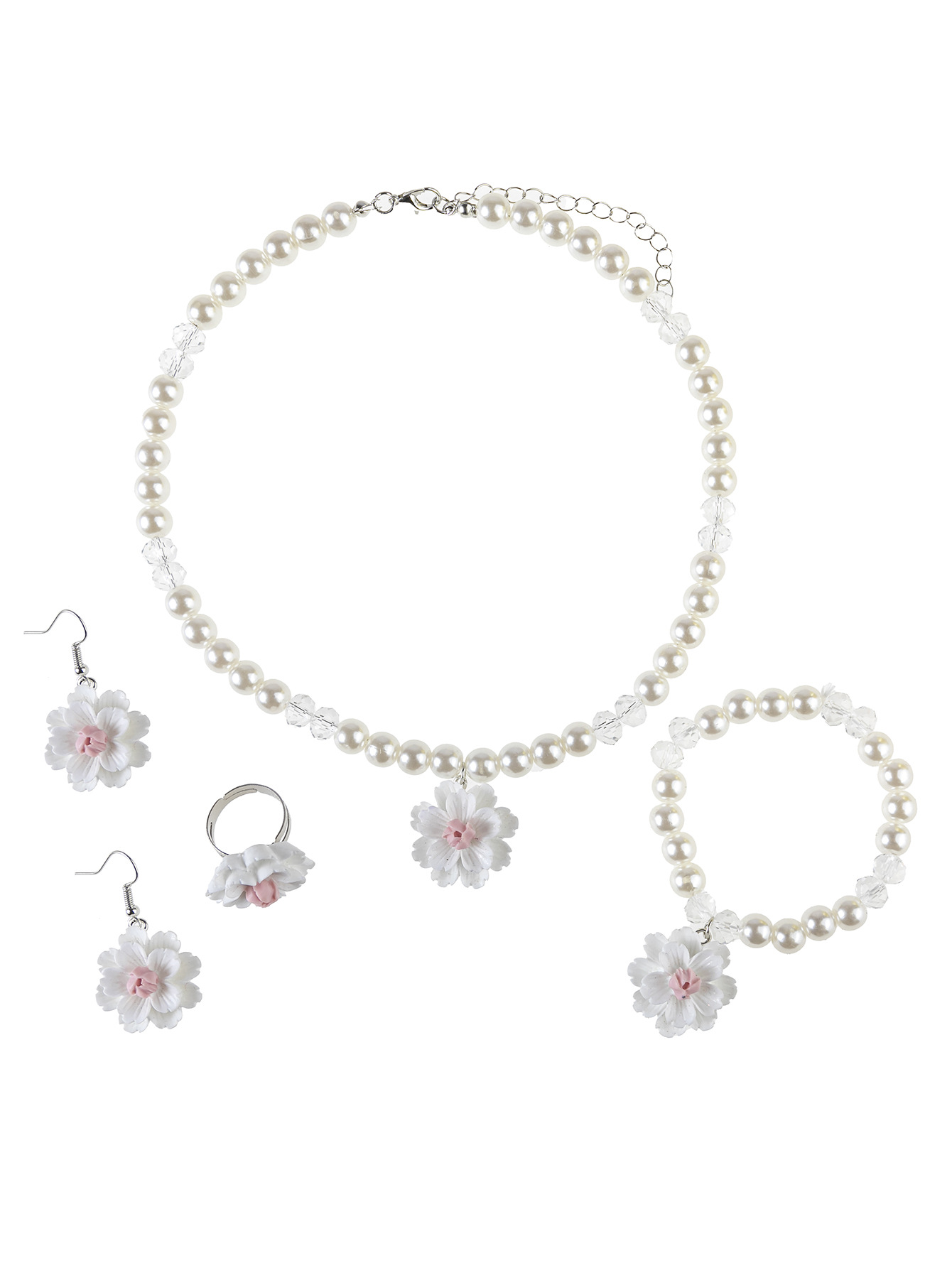白レジン手作りビーズ花々可爱い子供ネックレスイヤリングリング3点セット
