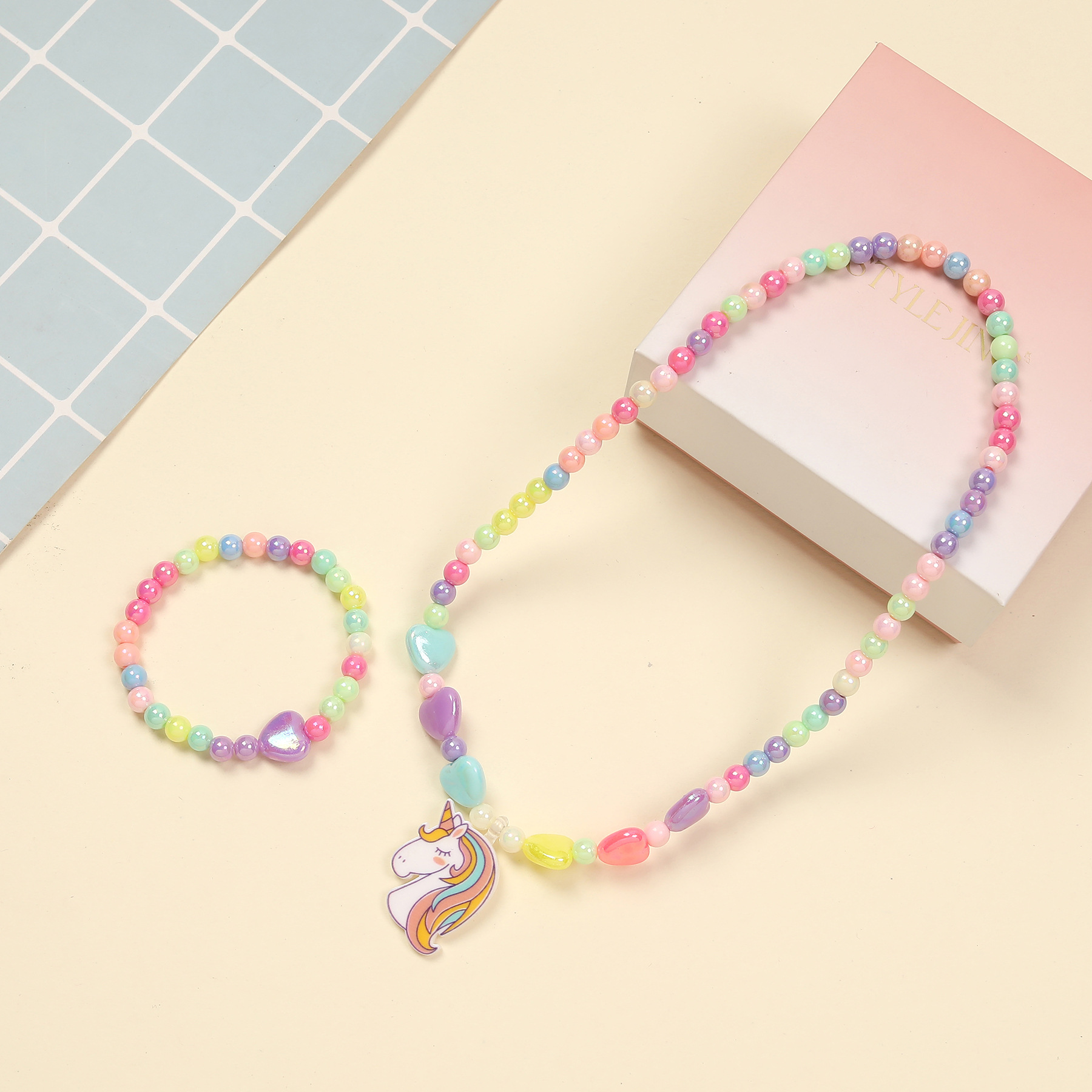 アマゾンの爆発的なかわいいアニメ樹脂虹ポニーペンダント子供アクセサリーセット女性ビーズアクセサリー日韓