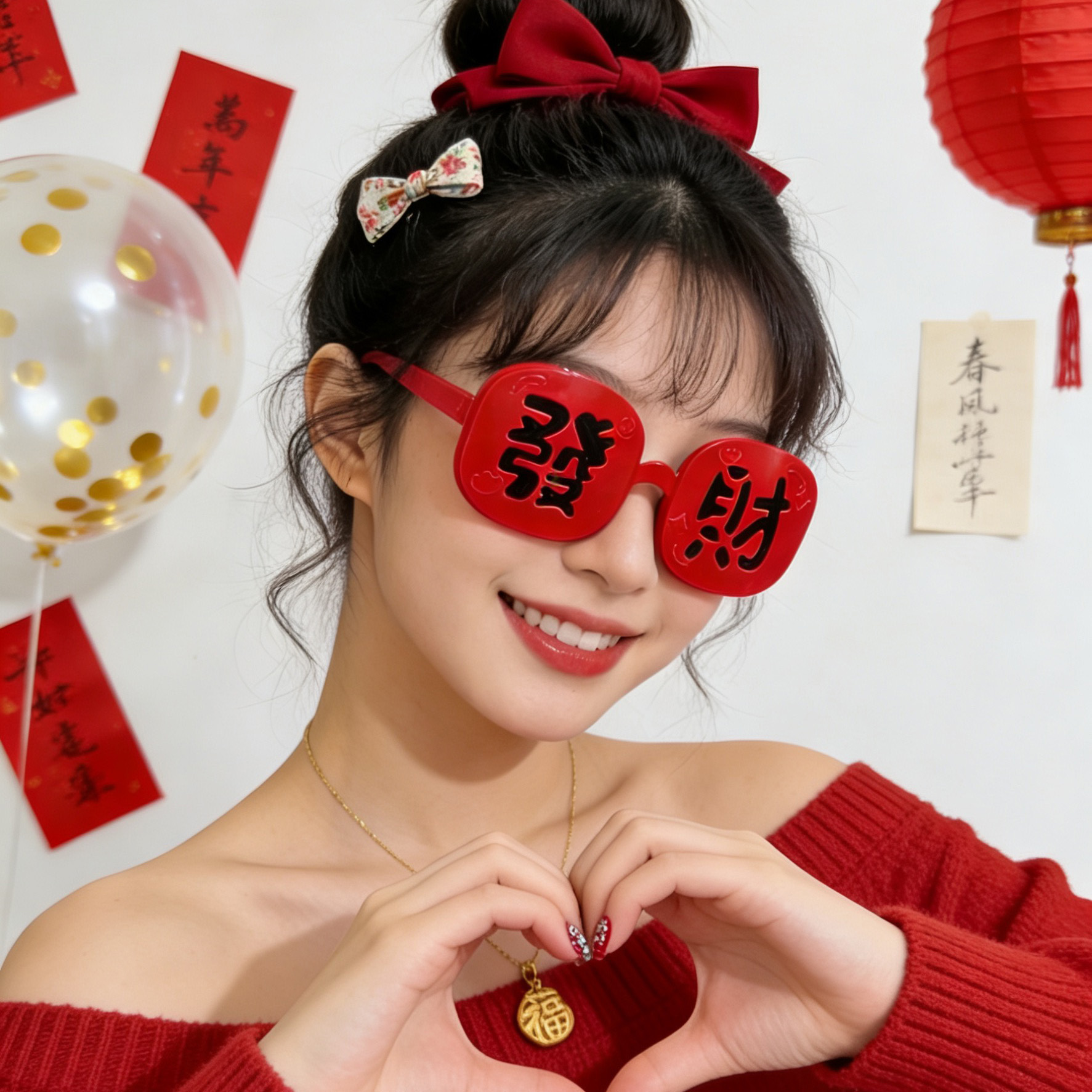 26年过年氛围感眼镜红色翻盖发财墨镜新年喜庆网红拍照闺蜜太阳镜