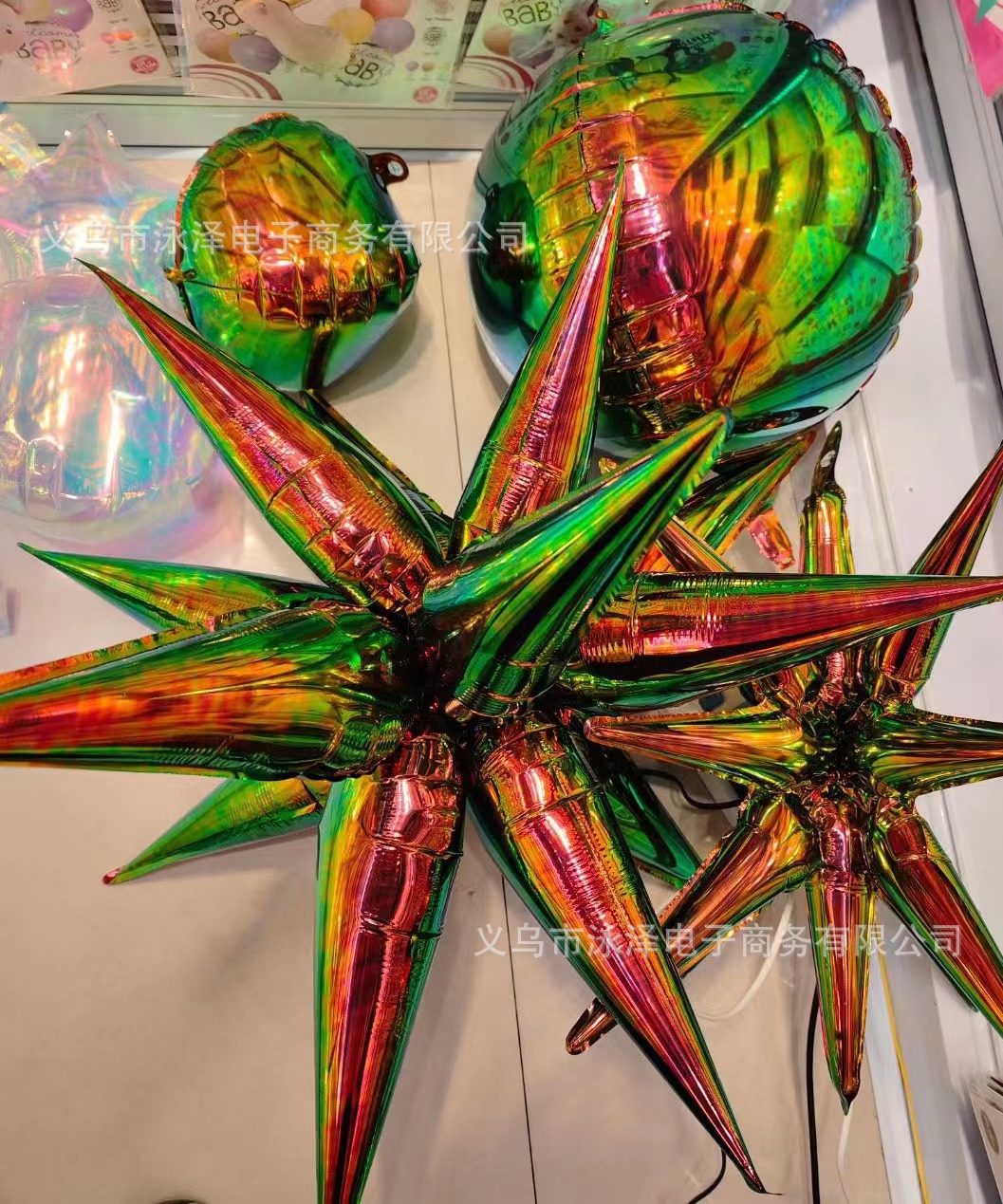【色差】:气球所在环境不同,反射出来的光泽和颜色深浅也会不同。如室室外,阴天,晴天同一种气球的颜色感观上会有些差异。受显示器,照相机等影内,响,实物与图片颜色会存在轻微差别,不可避免