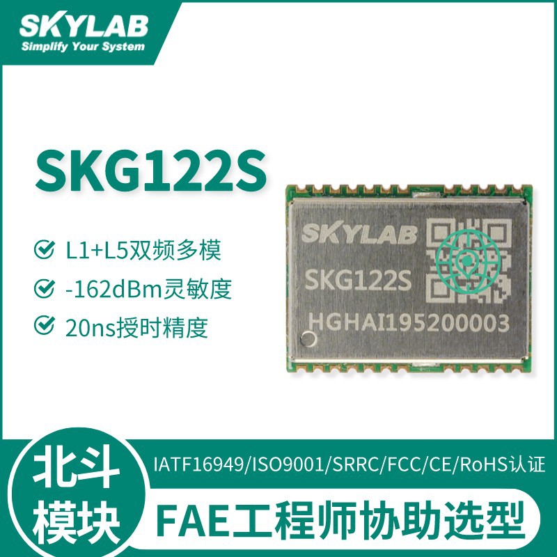 SKG12D-09H模块是一款双频单北斗定位导航模块,模块内部集成了SOC基带+射频一体芯片,芯片已有单北斗认证证书,可支持BDSB1I+B1C+B2A频点,全面支持北斗三信号,可为用户提供抗干扰强、功耗低、品质高的定位导航解决方案。